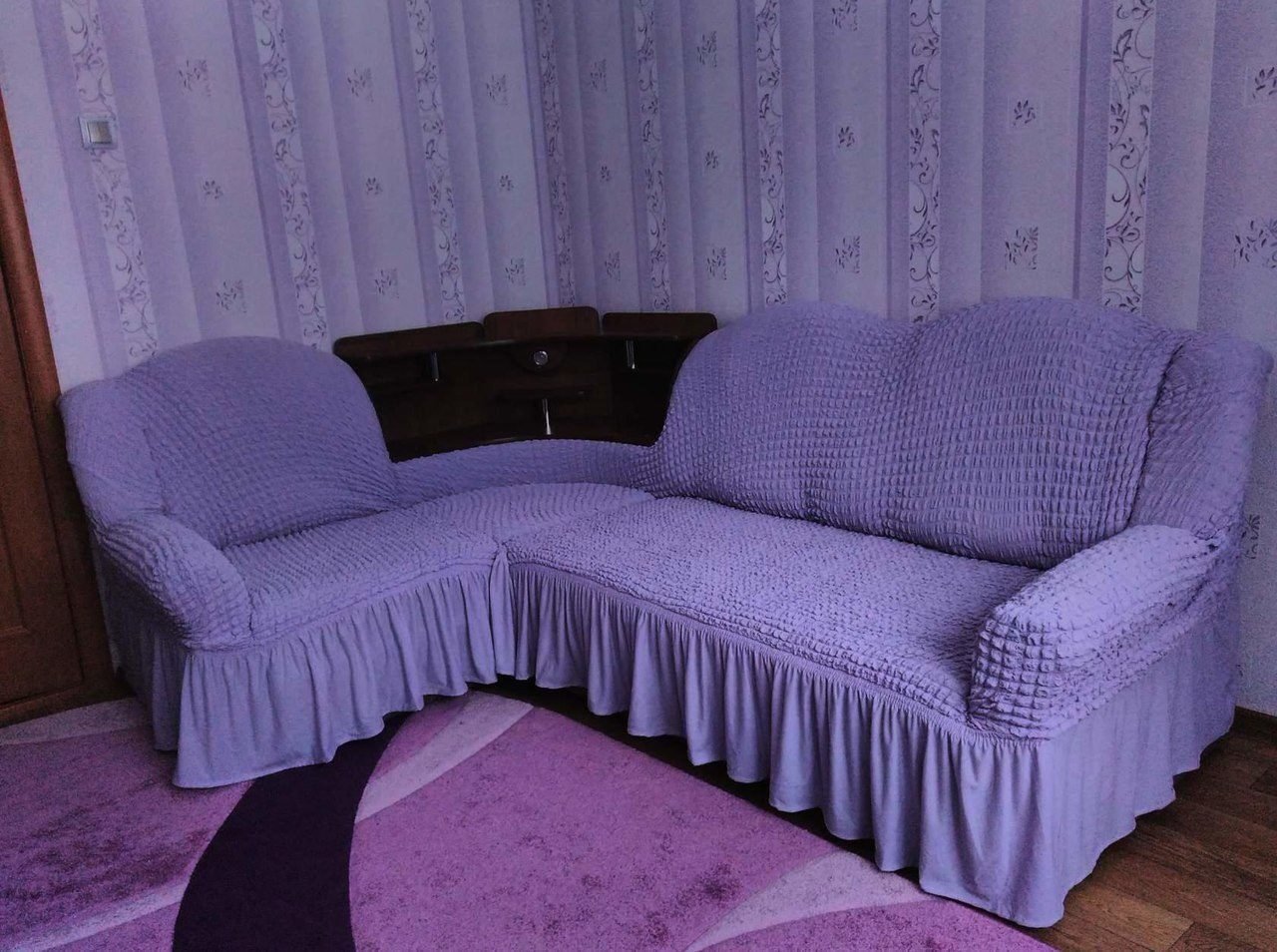 Чехол на угловой диван с баром в углу