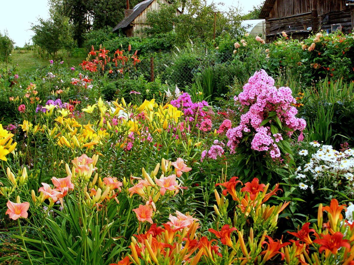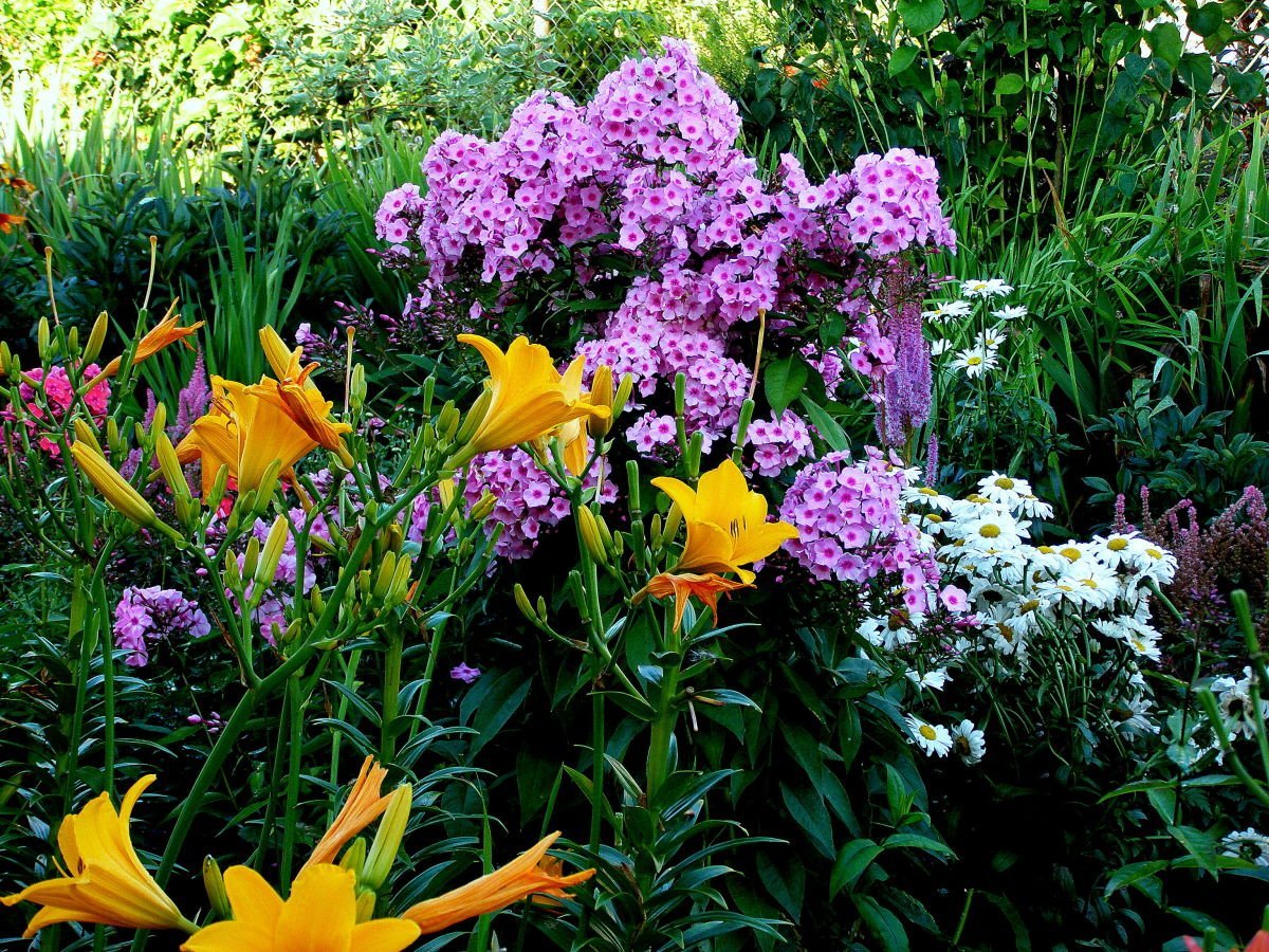 Цветник лилейники Флоксы хосты