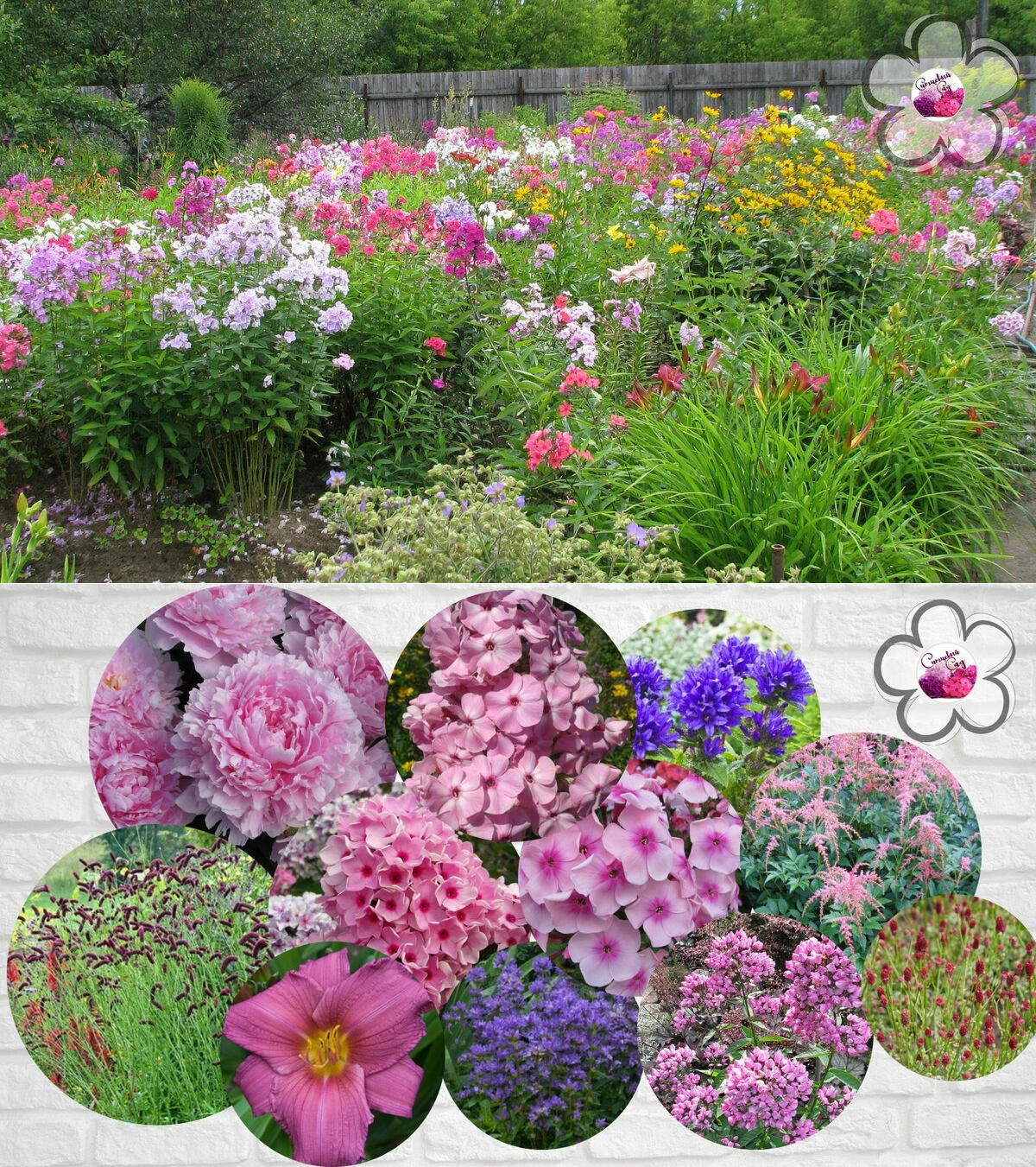 Клумба лилейники, Флоксы, ирисы, пионы, лилии