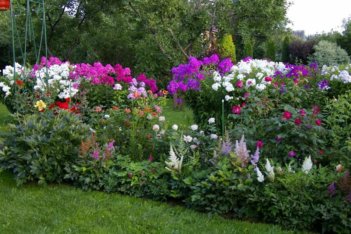Клумба Флоксы лилейники астильба пион