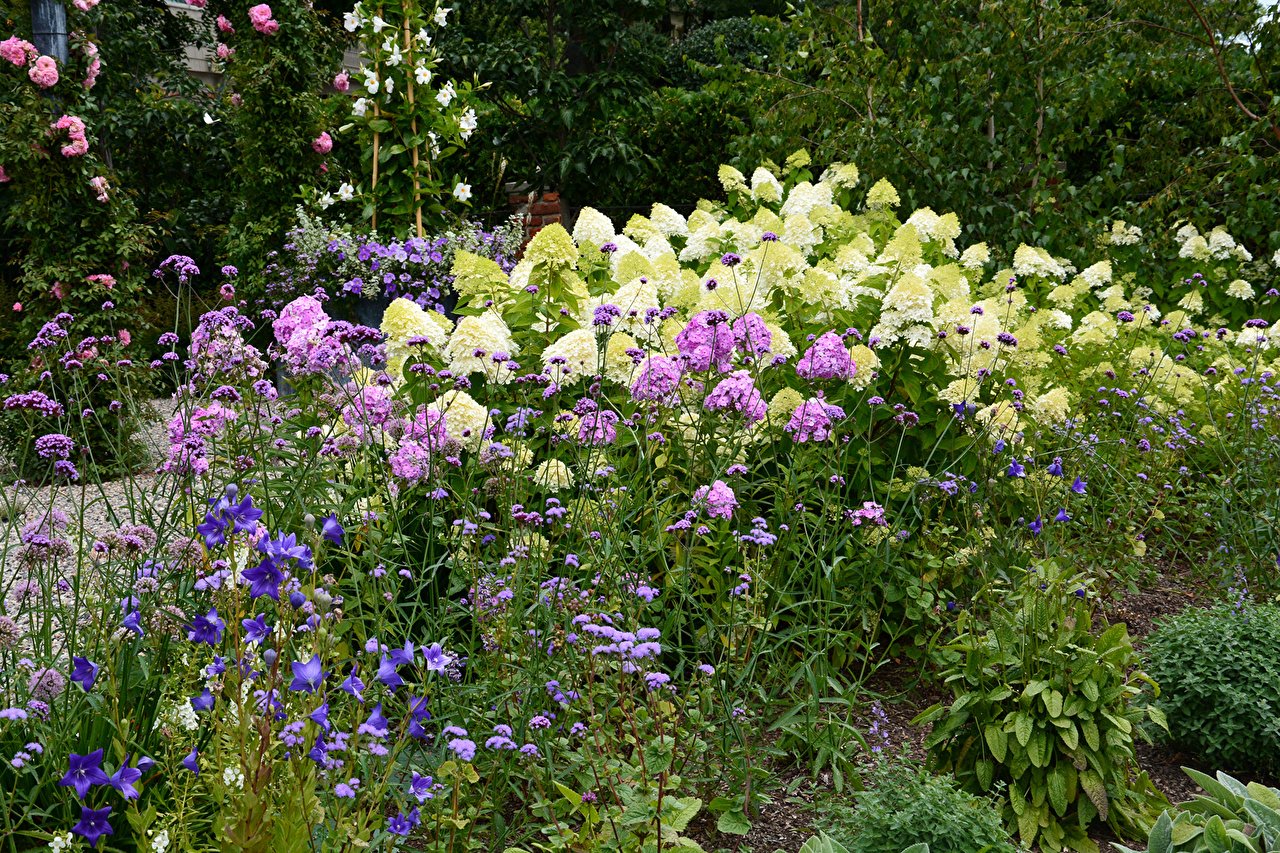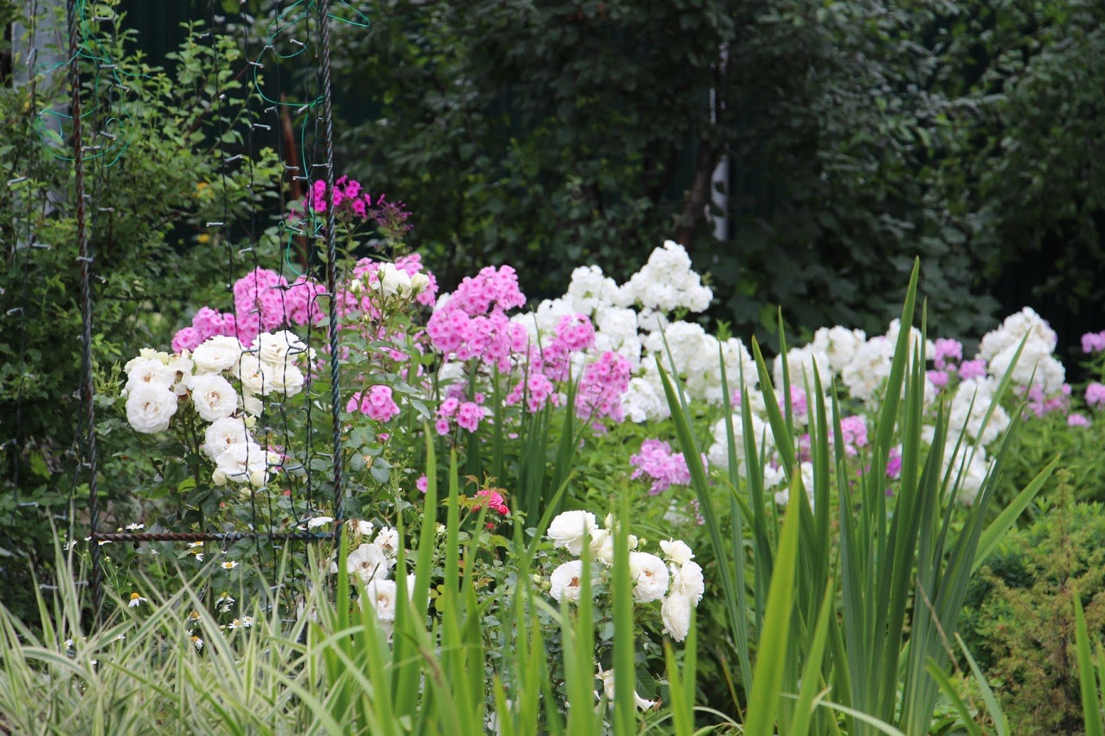 Миксбордер с розами и флоксами
