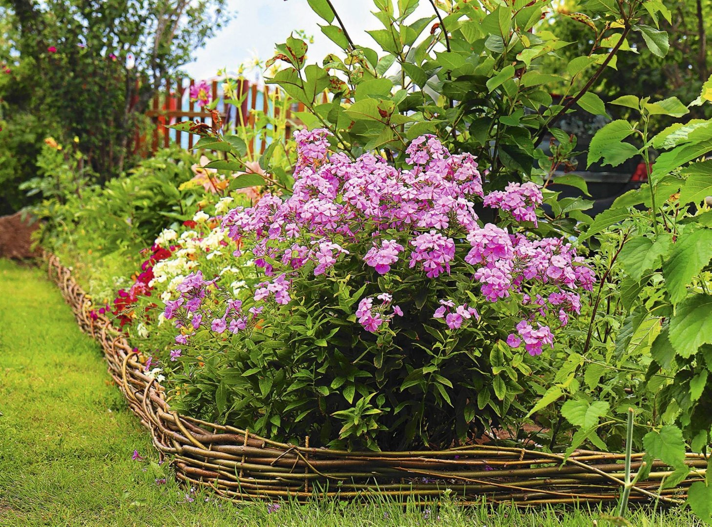 Флоксы, сирень, Жасмин клумба
