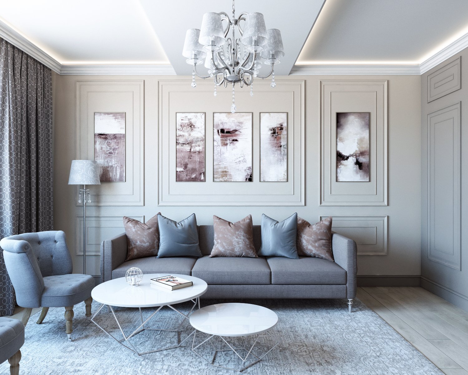 Серая гостиная в классическом стиле