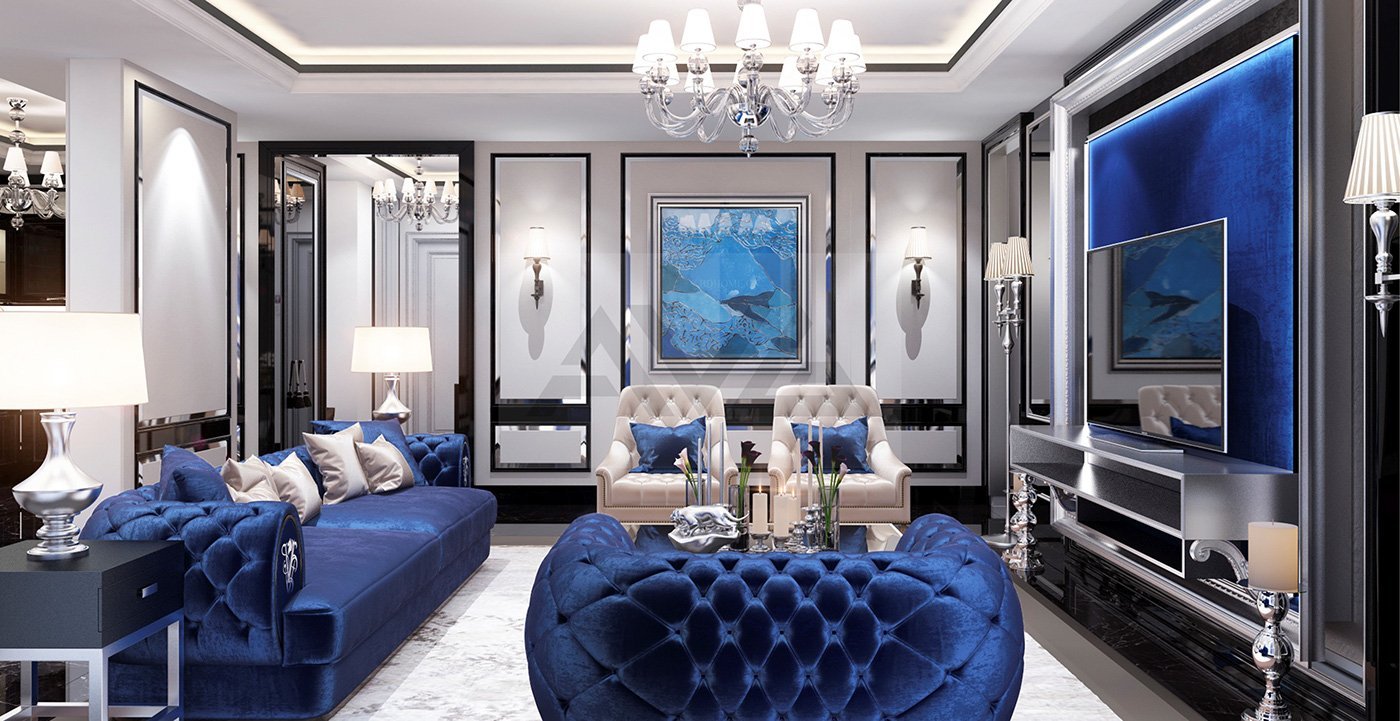 Гостиная в серо голубых тонах
