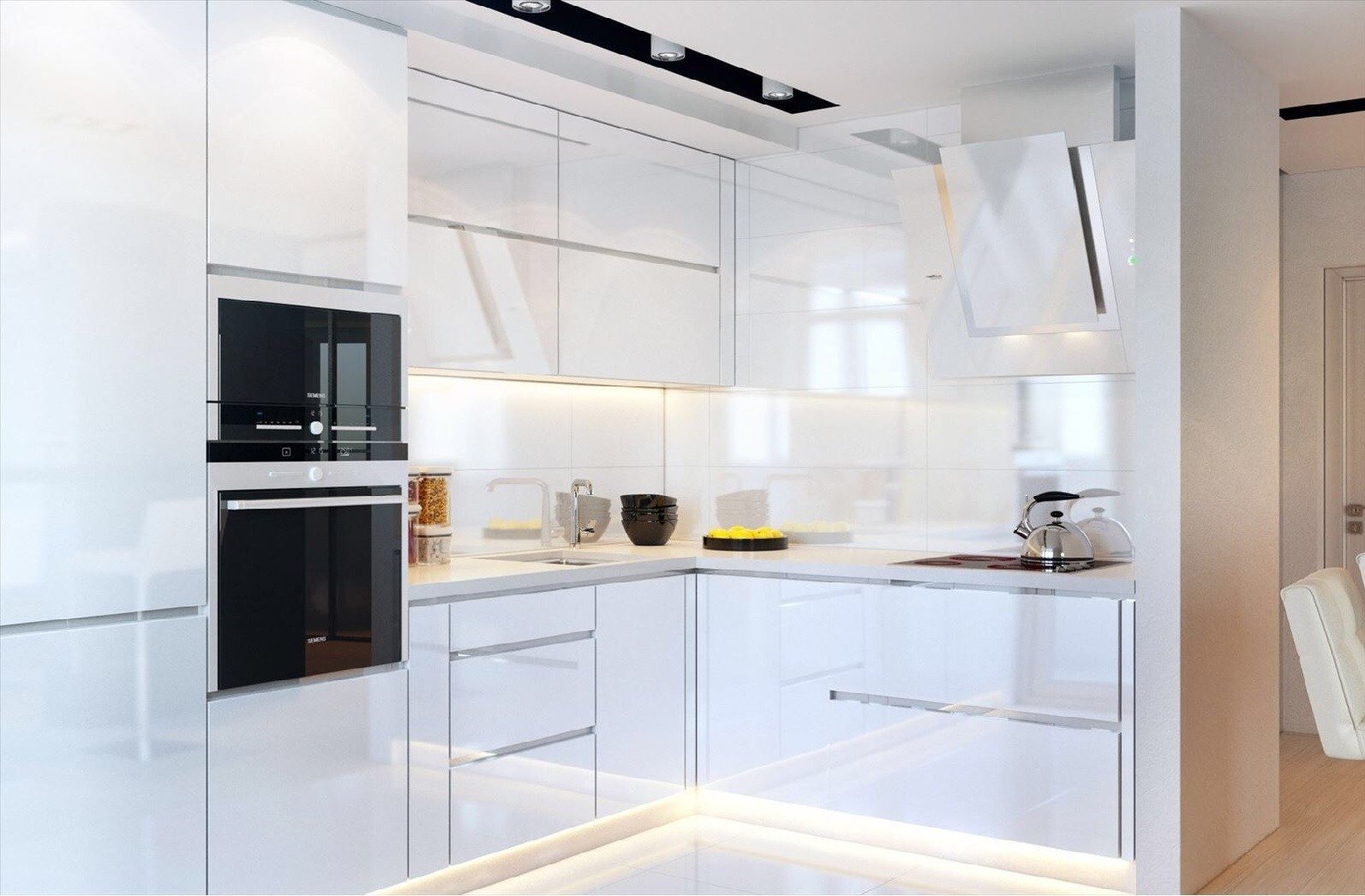 Маленькая белая глянцевая кухня