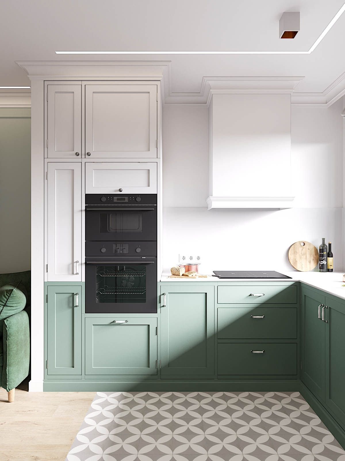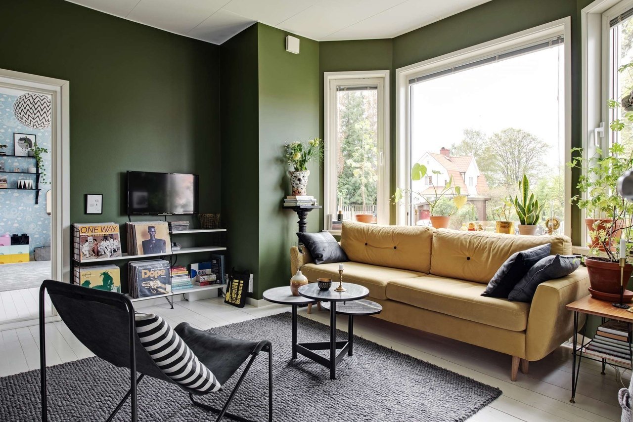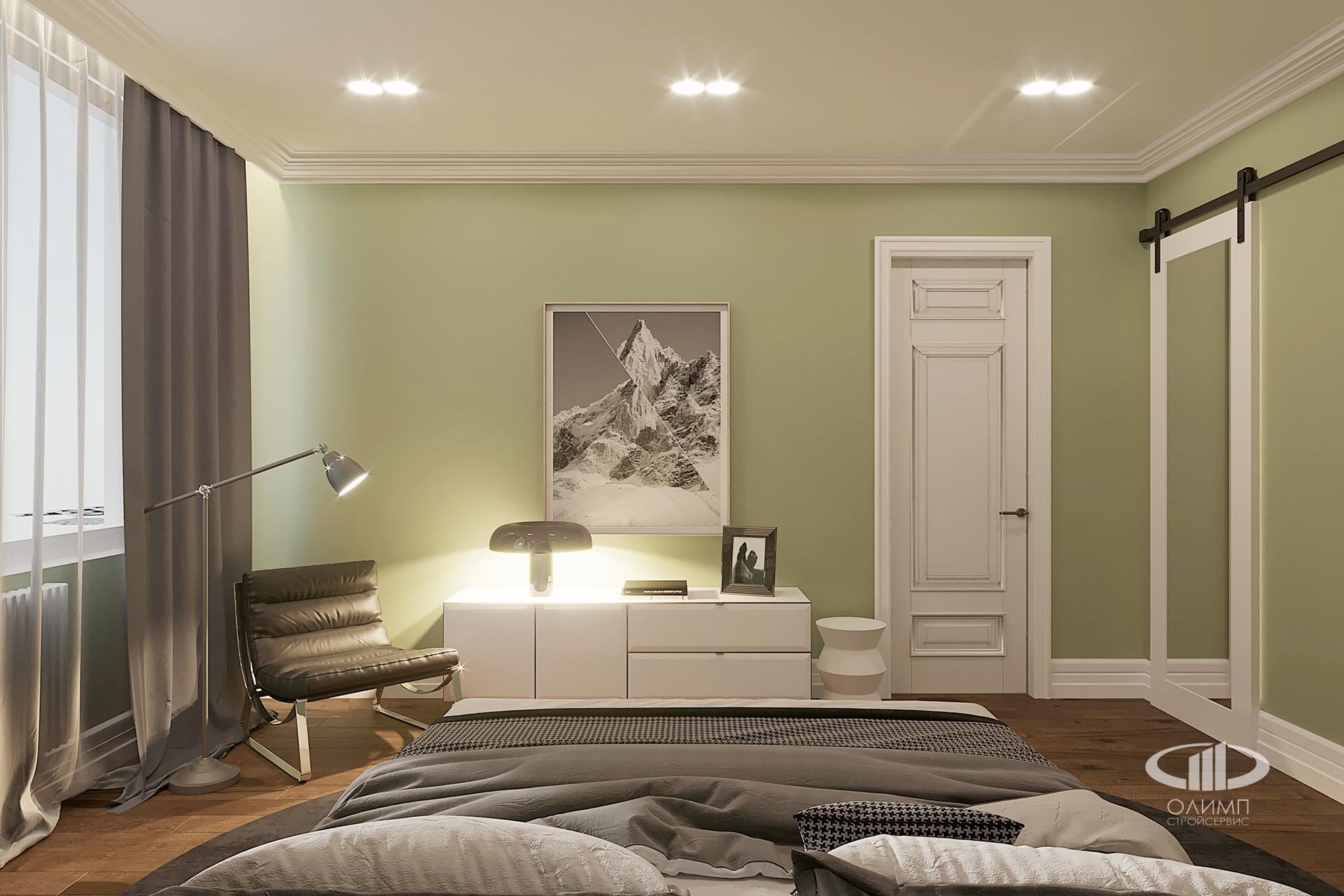 Дизайн комнаты 12 кв.м. в серо оливковых тонах