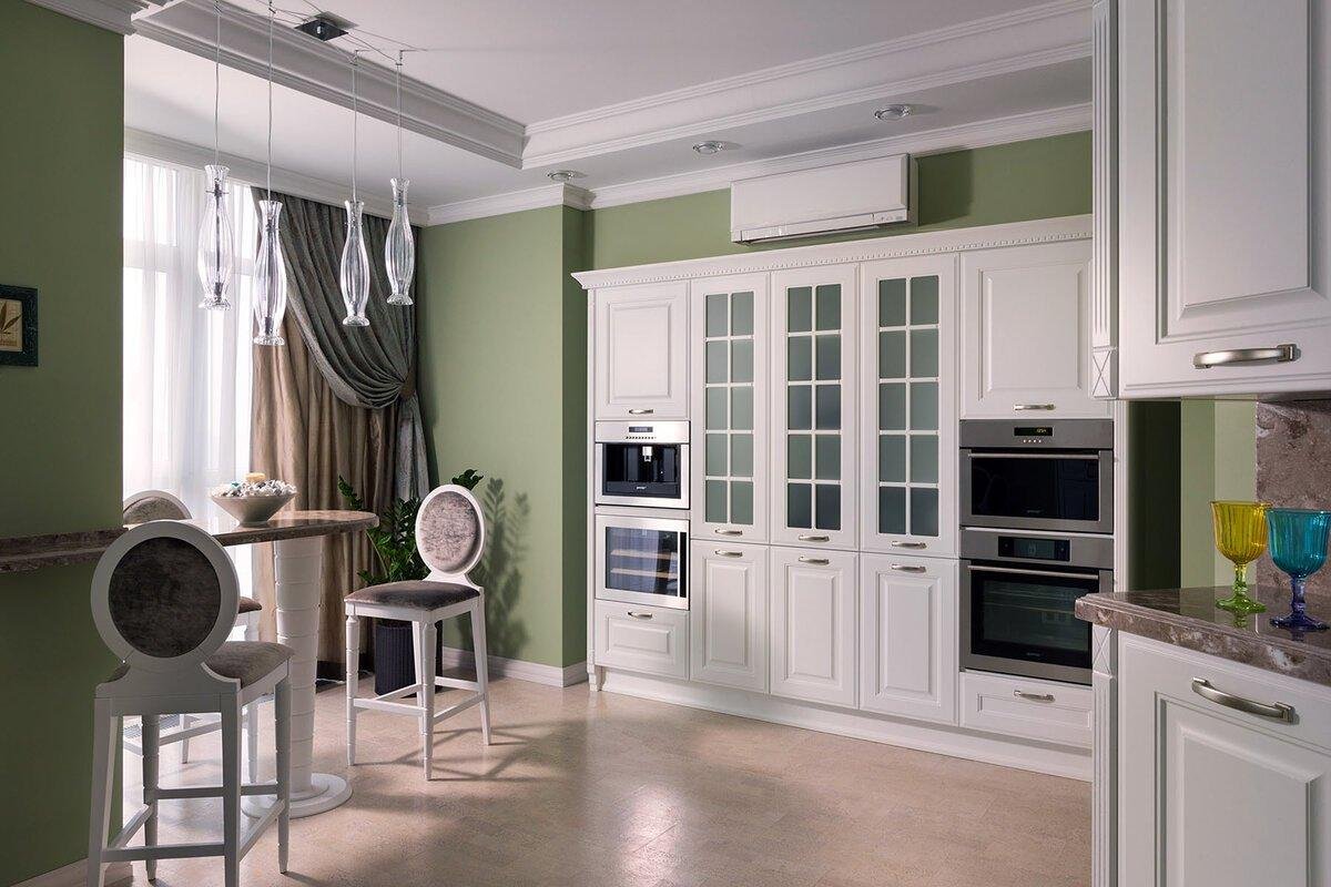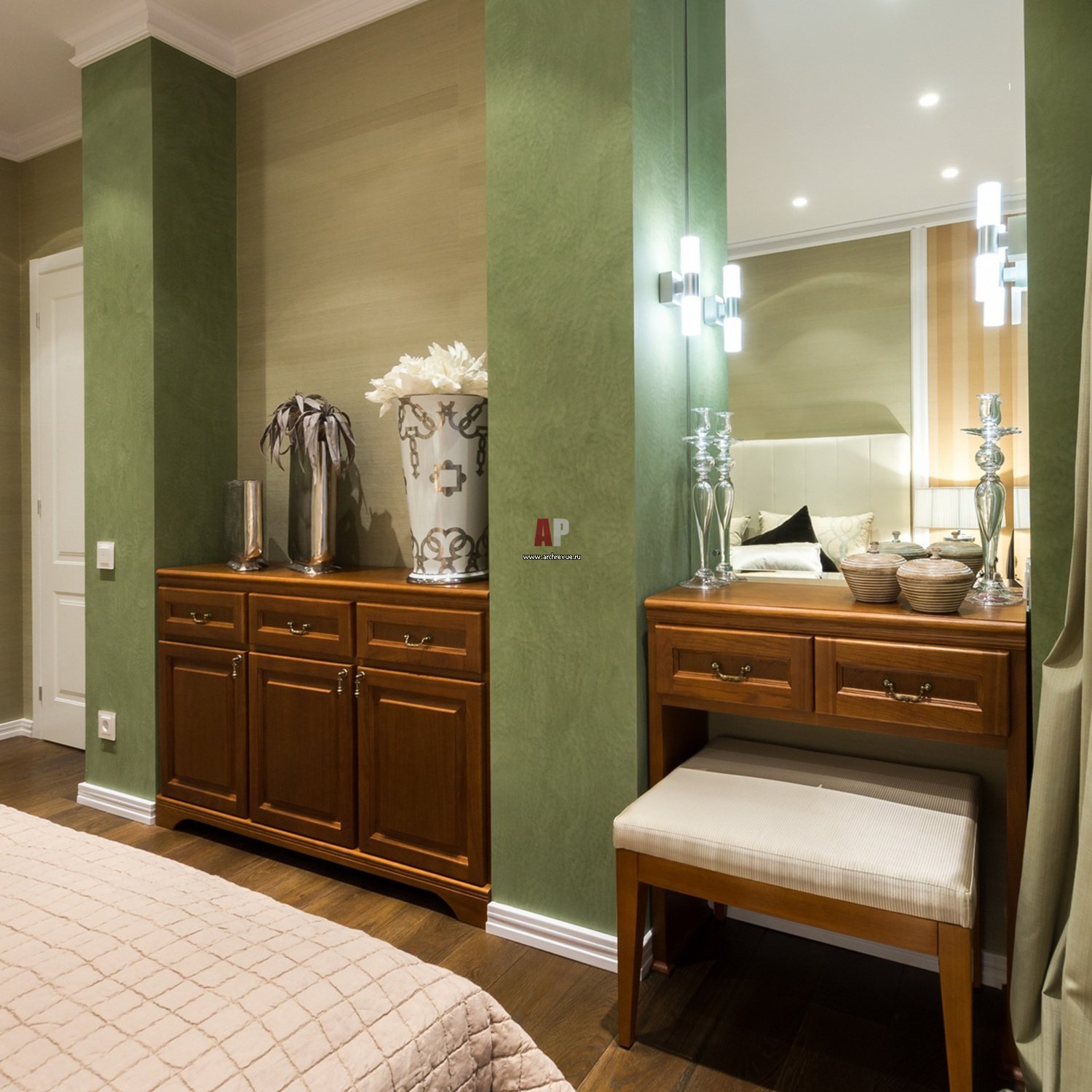 Интерьер спальни в итальянском стиле в зеленых тонах