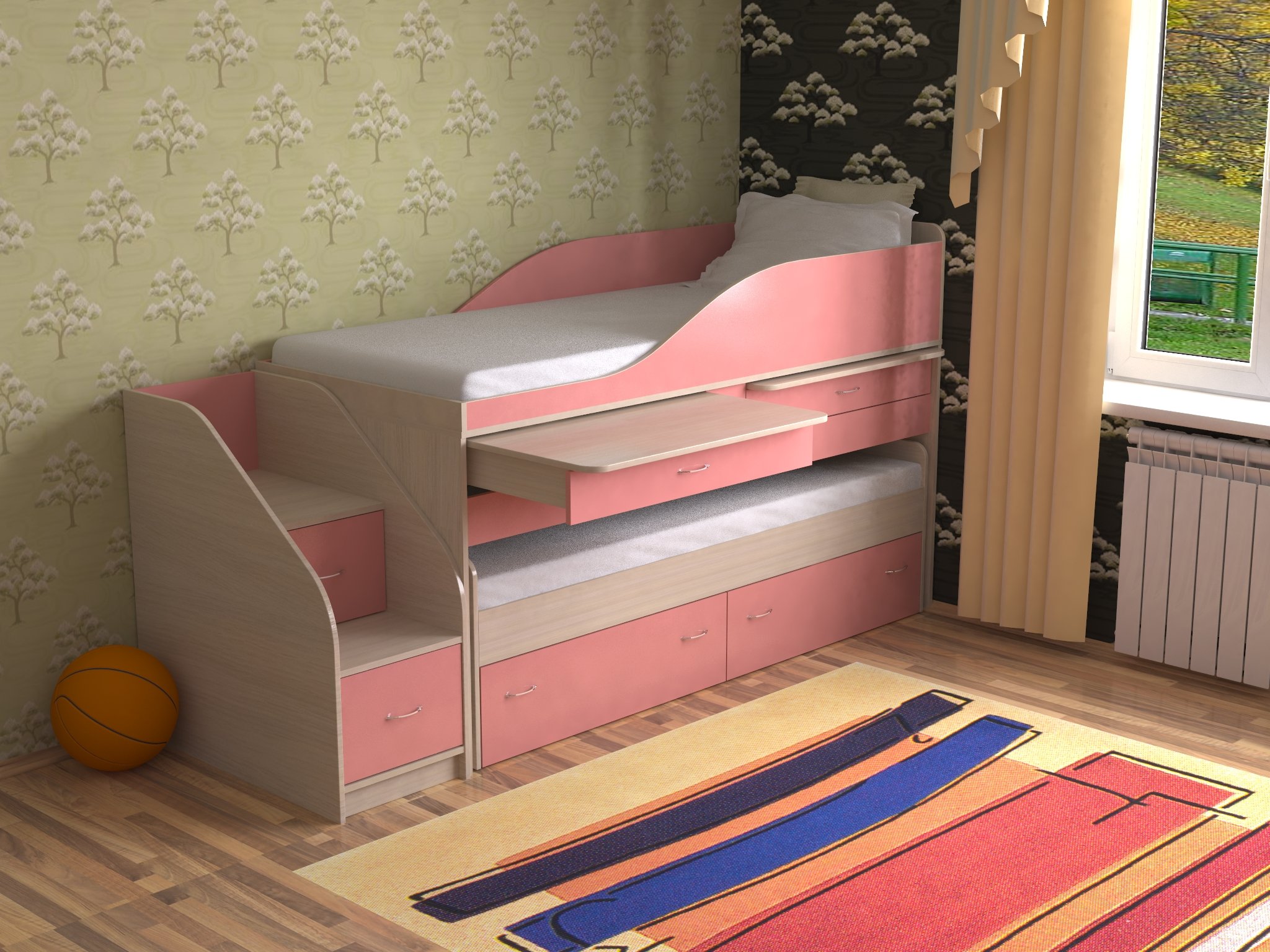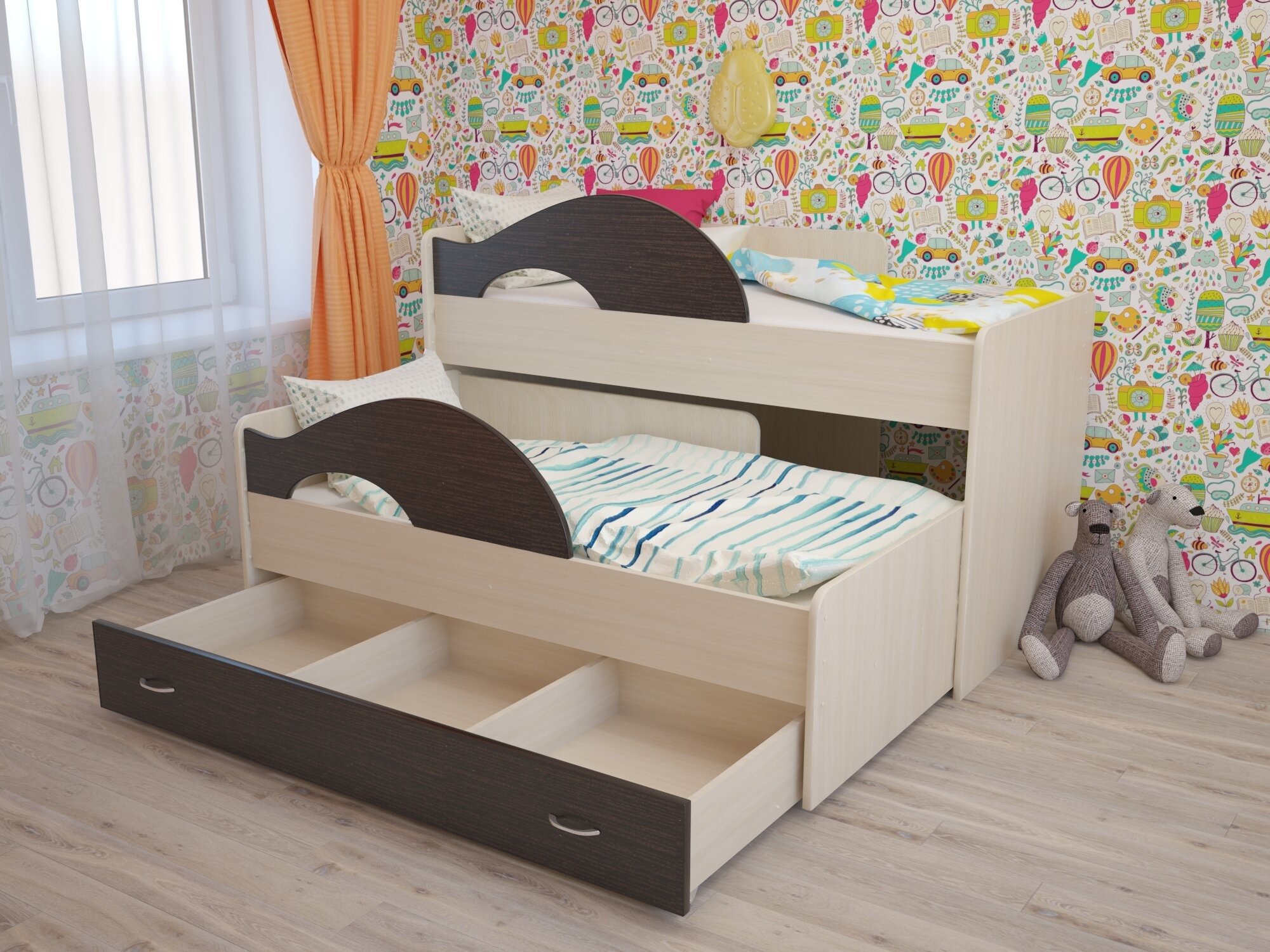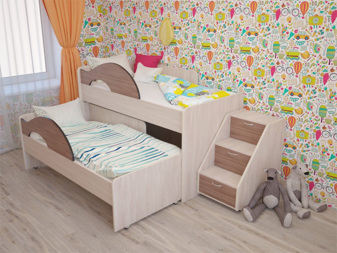 Выдвижная кровать для двоих детей