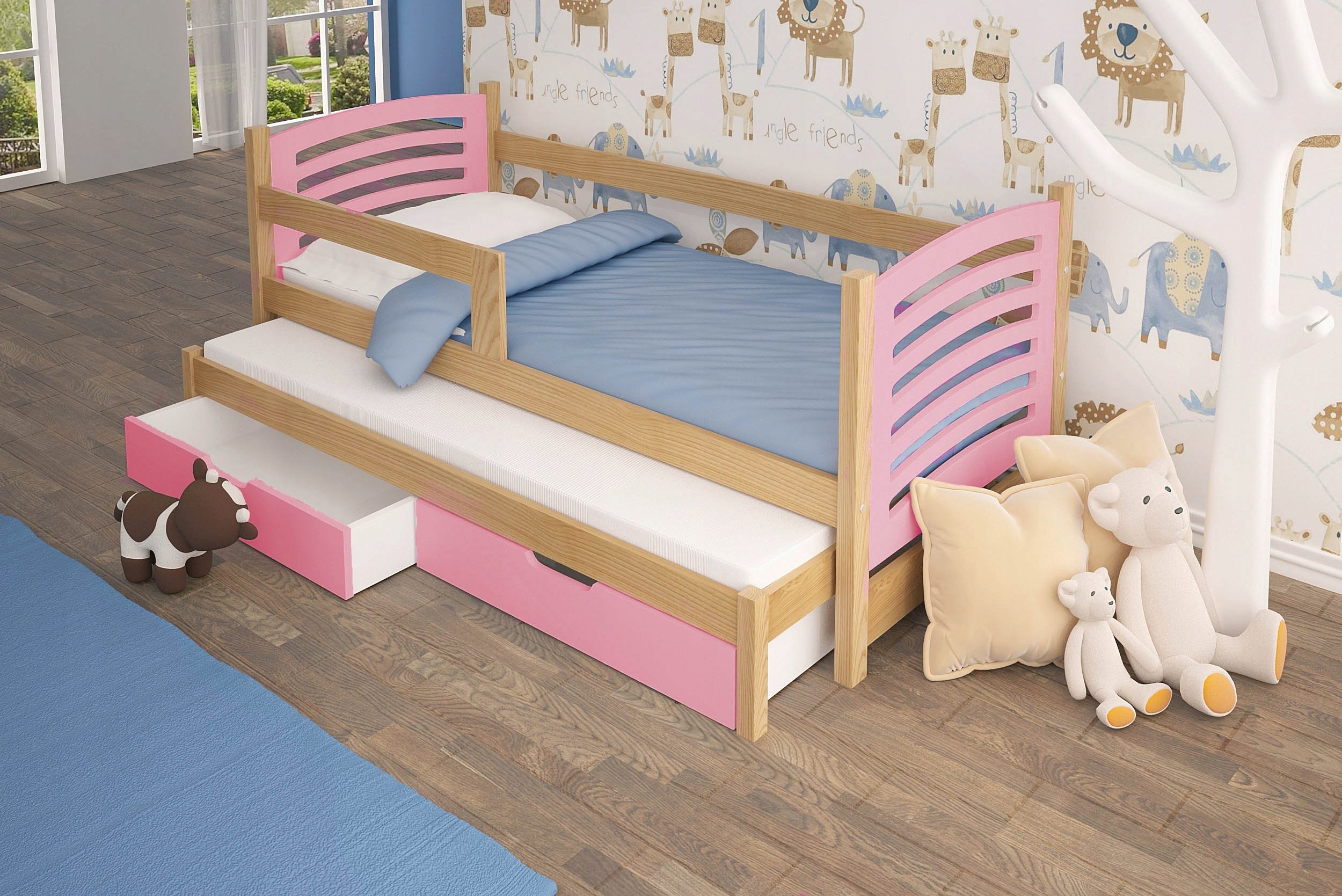 Выдвижная кровать для детей с бортиками