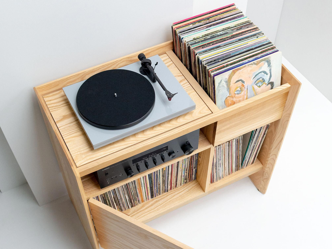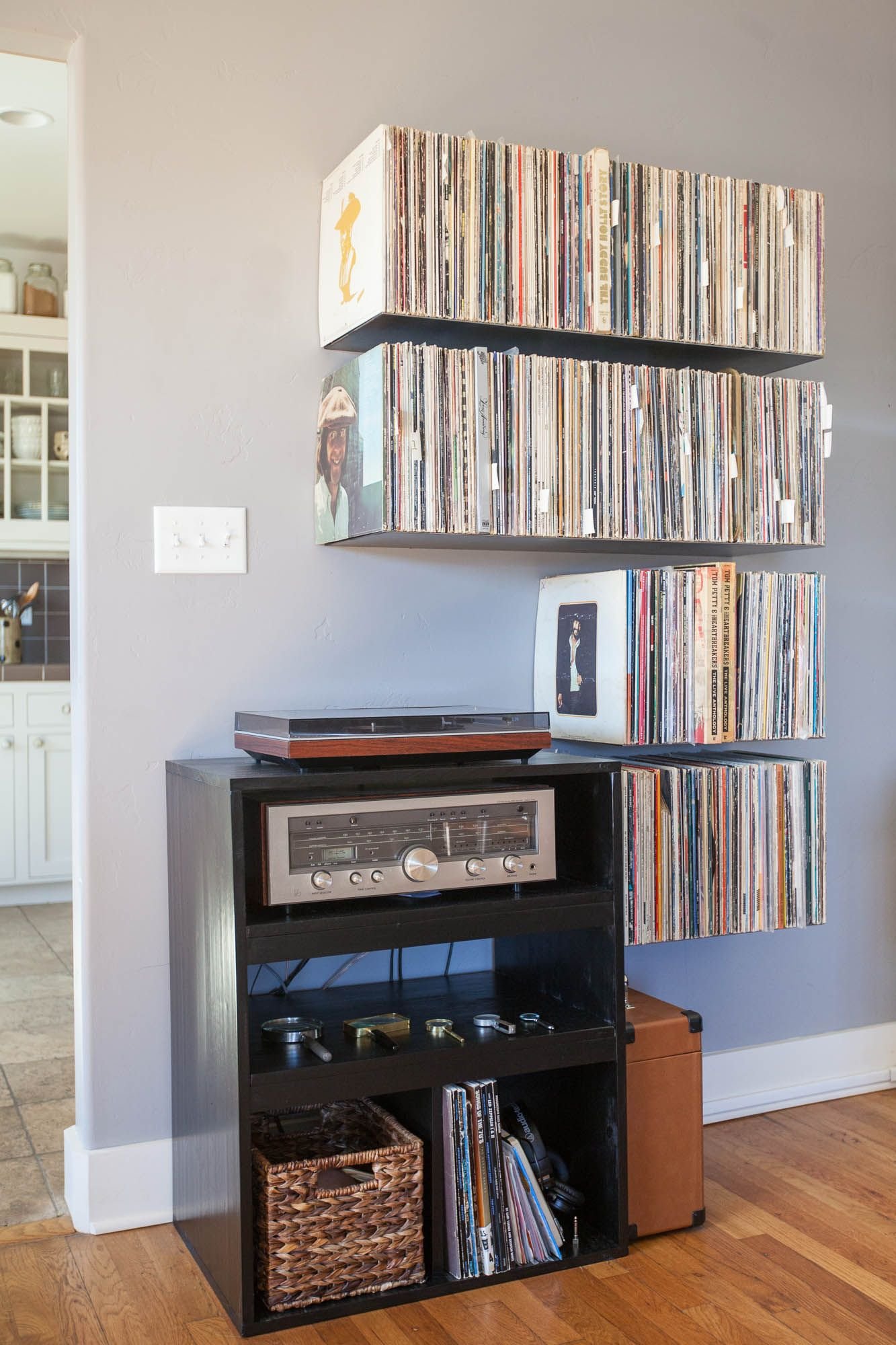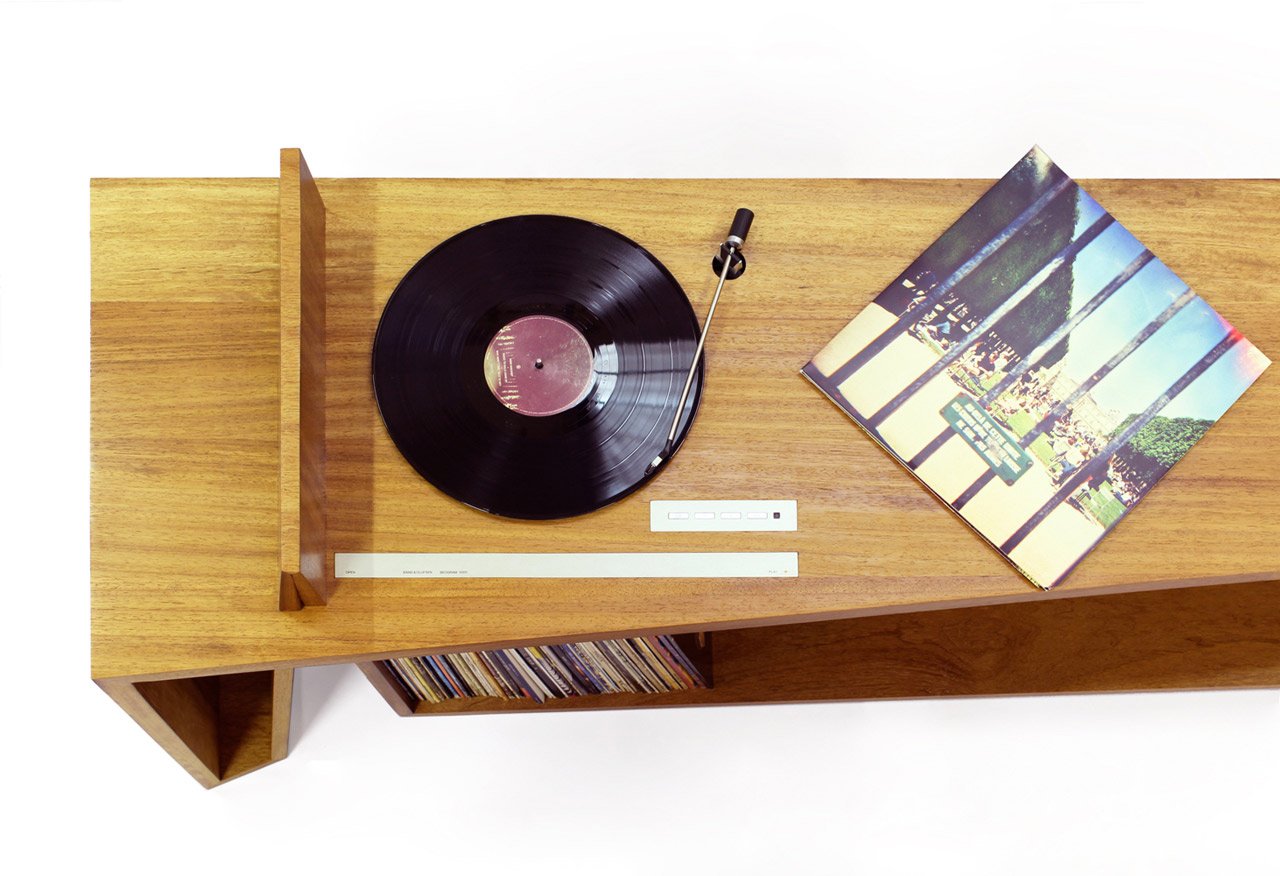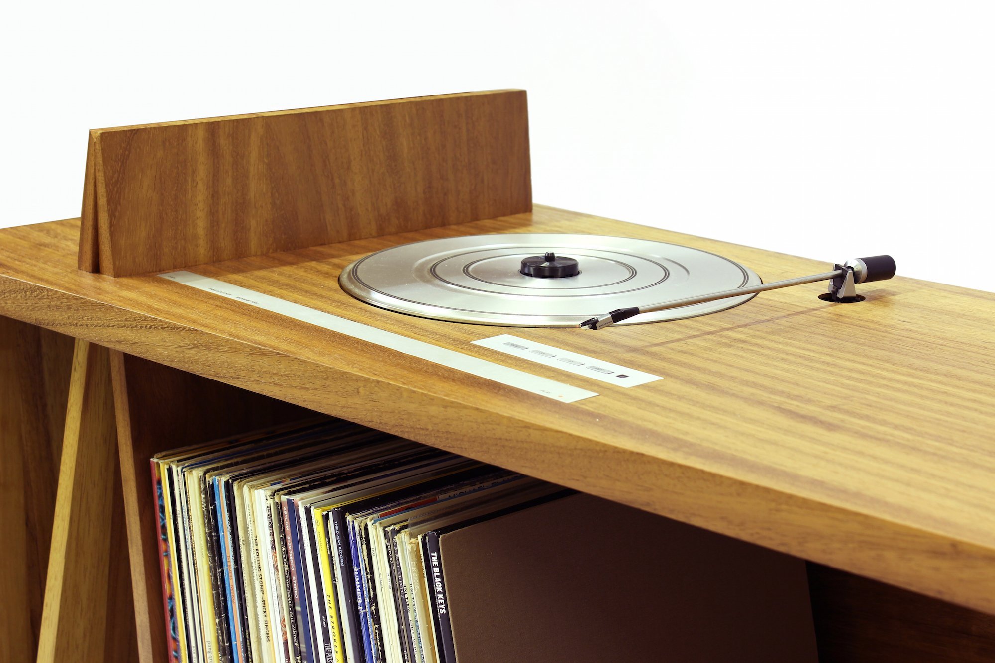 Проигрыватель виниловых пластинок в интерьере Сканди