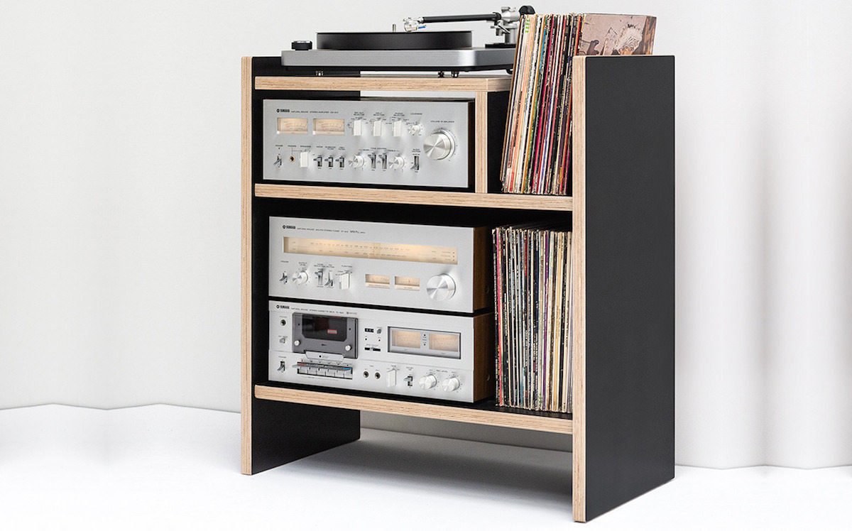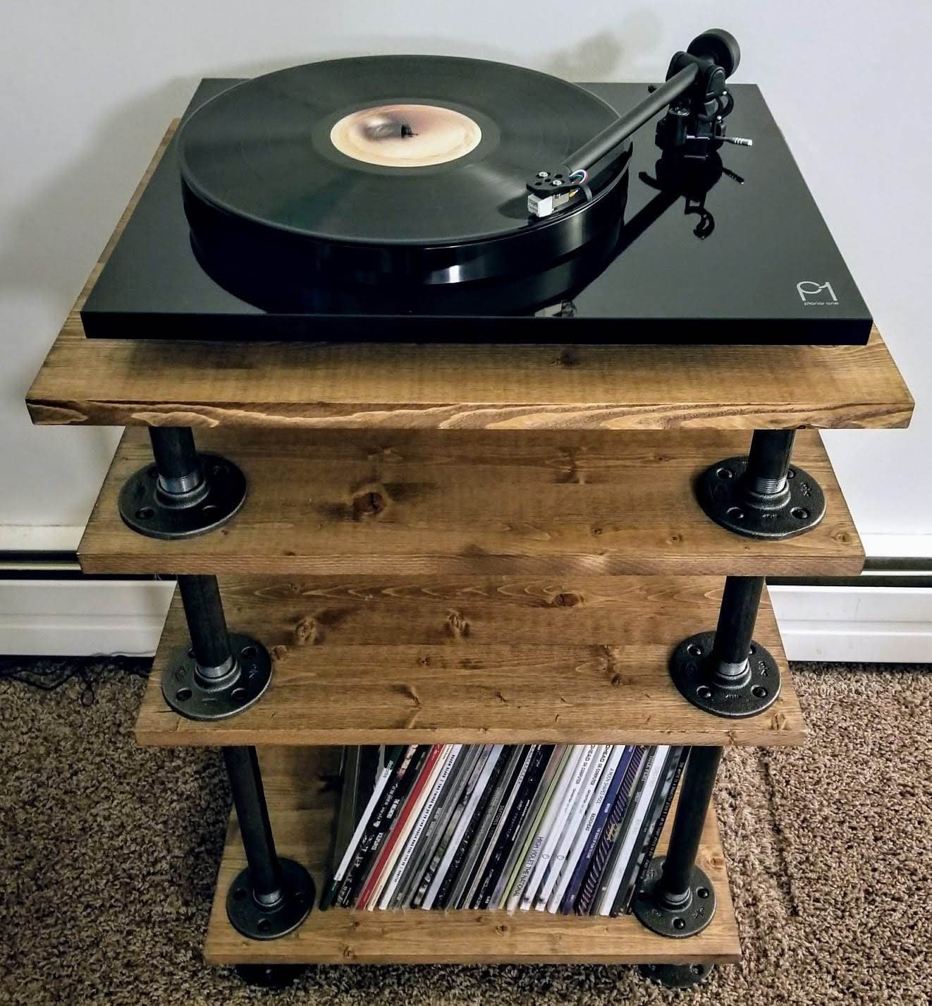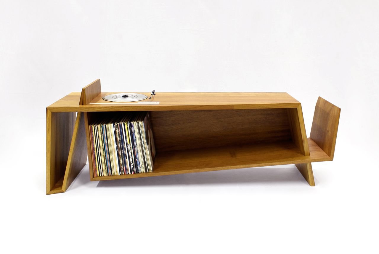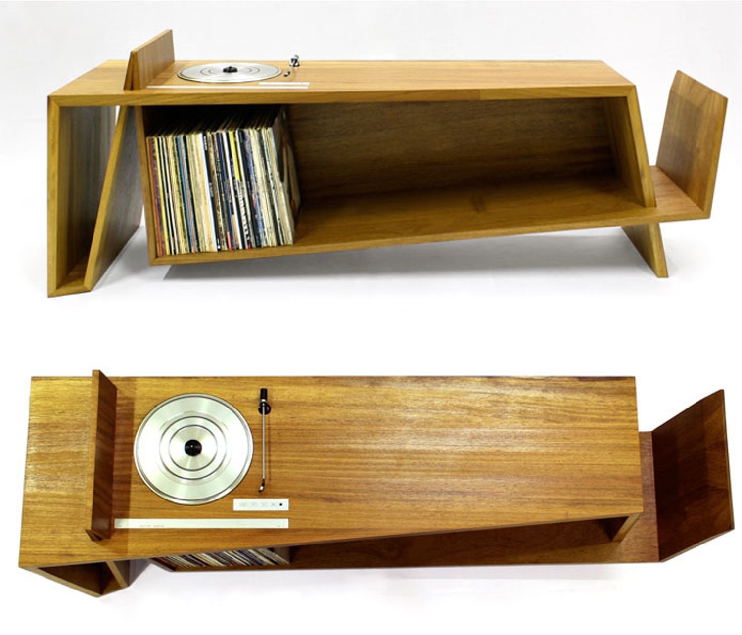 Проигрыватель виниловых пластинок в интерьере Сканди