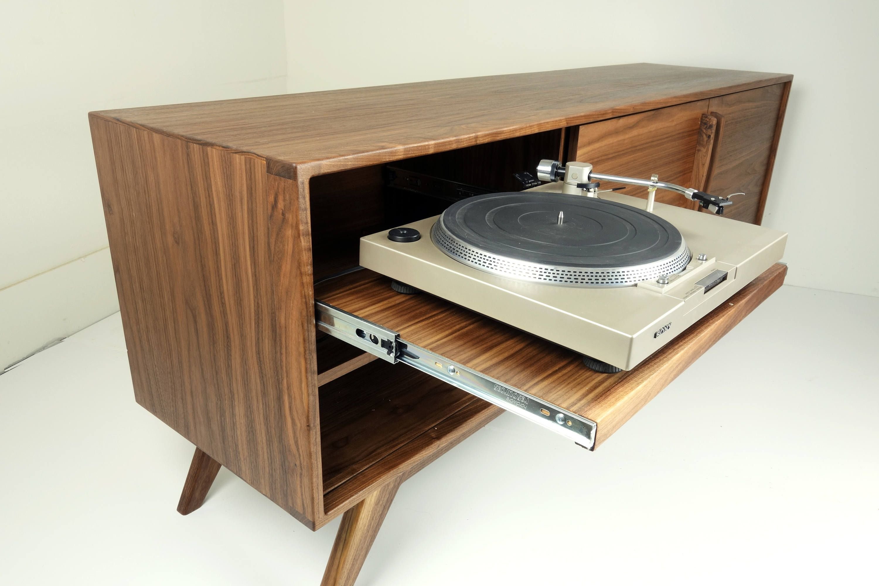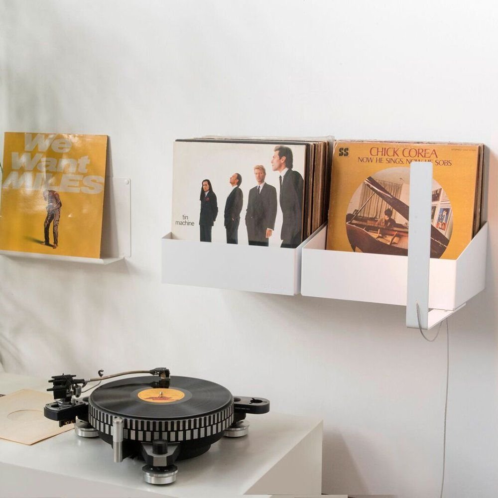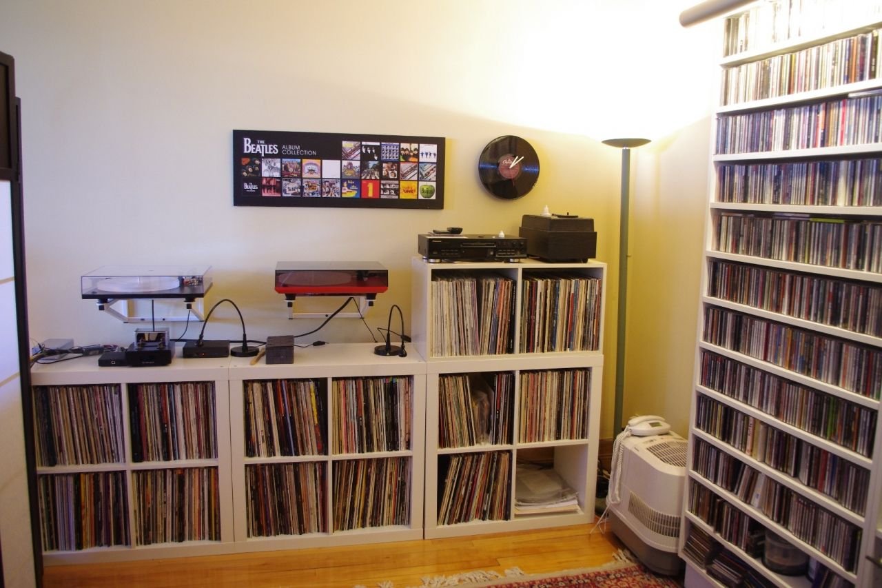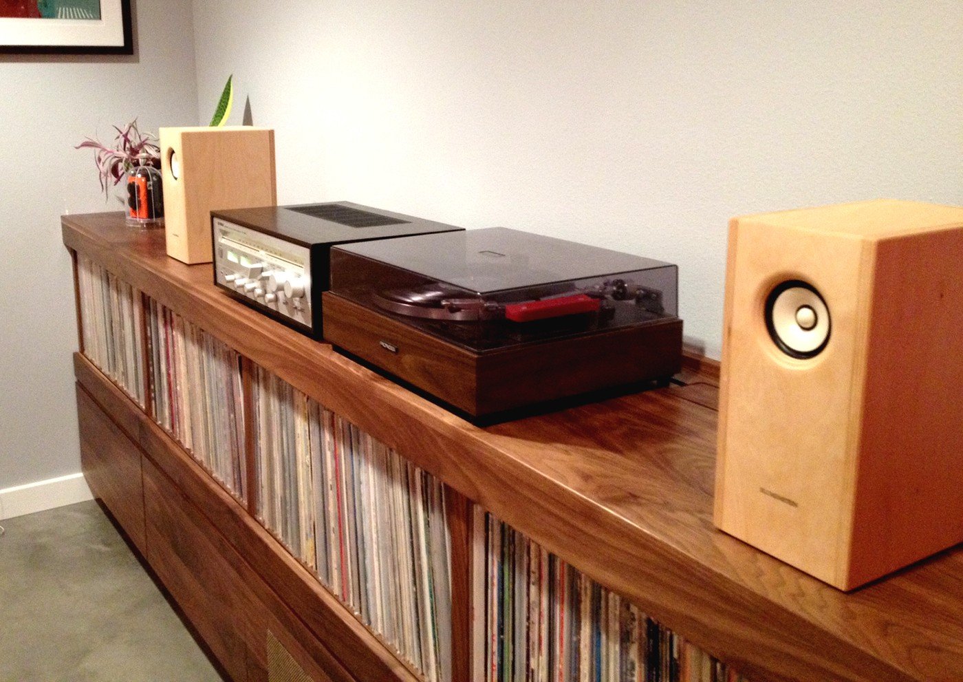 Проигрыватель виниловых пластинок в интерьере Сканди