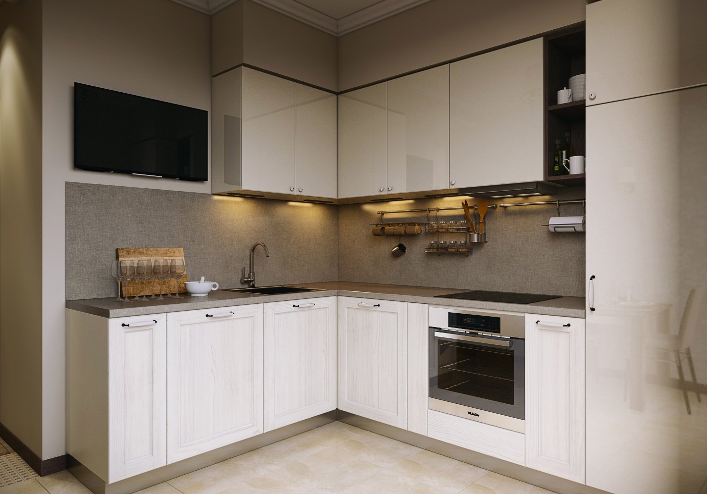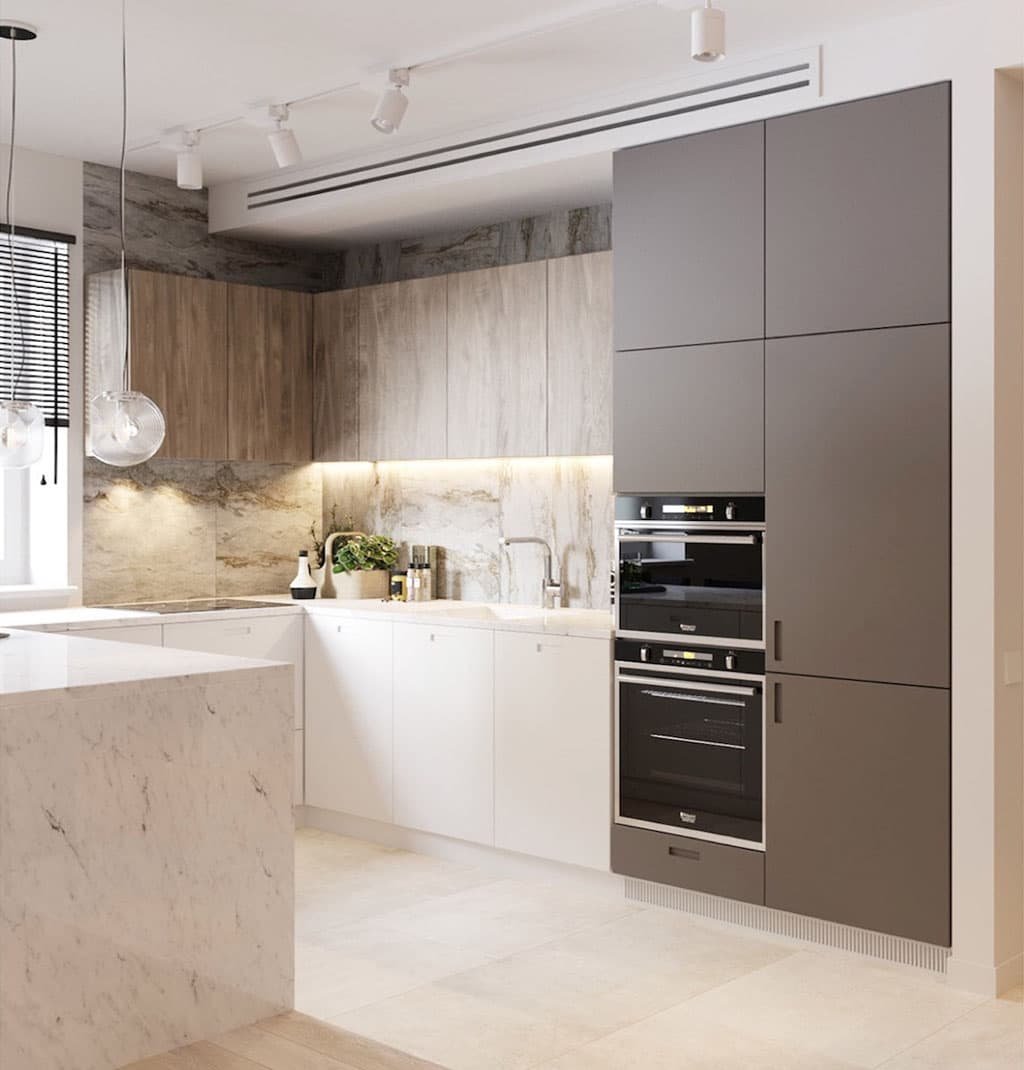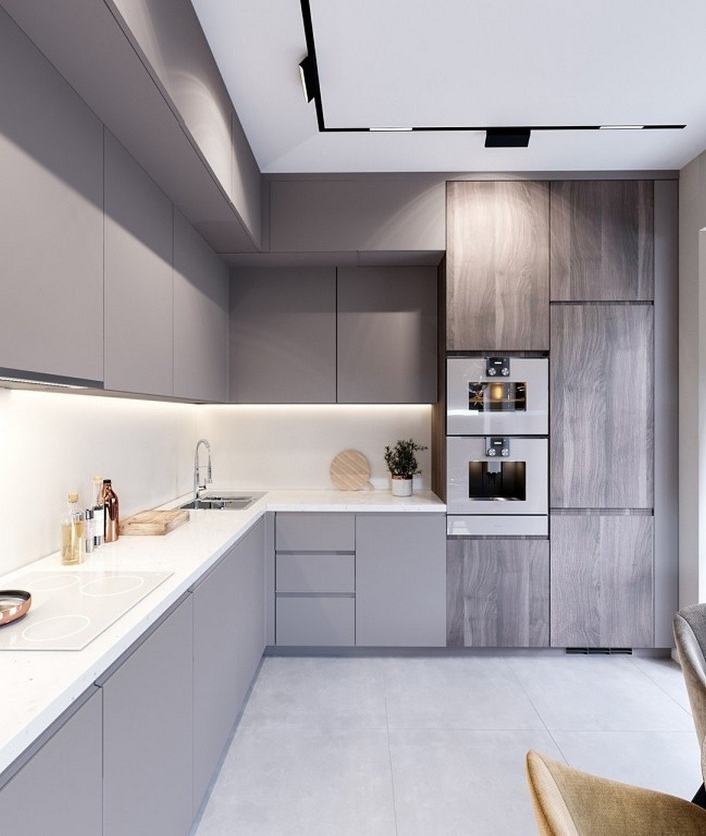 Серо бежевые кухни в современном стиле