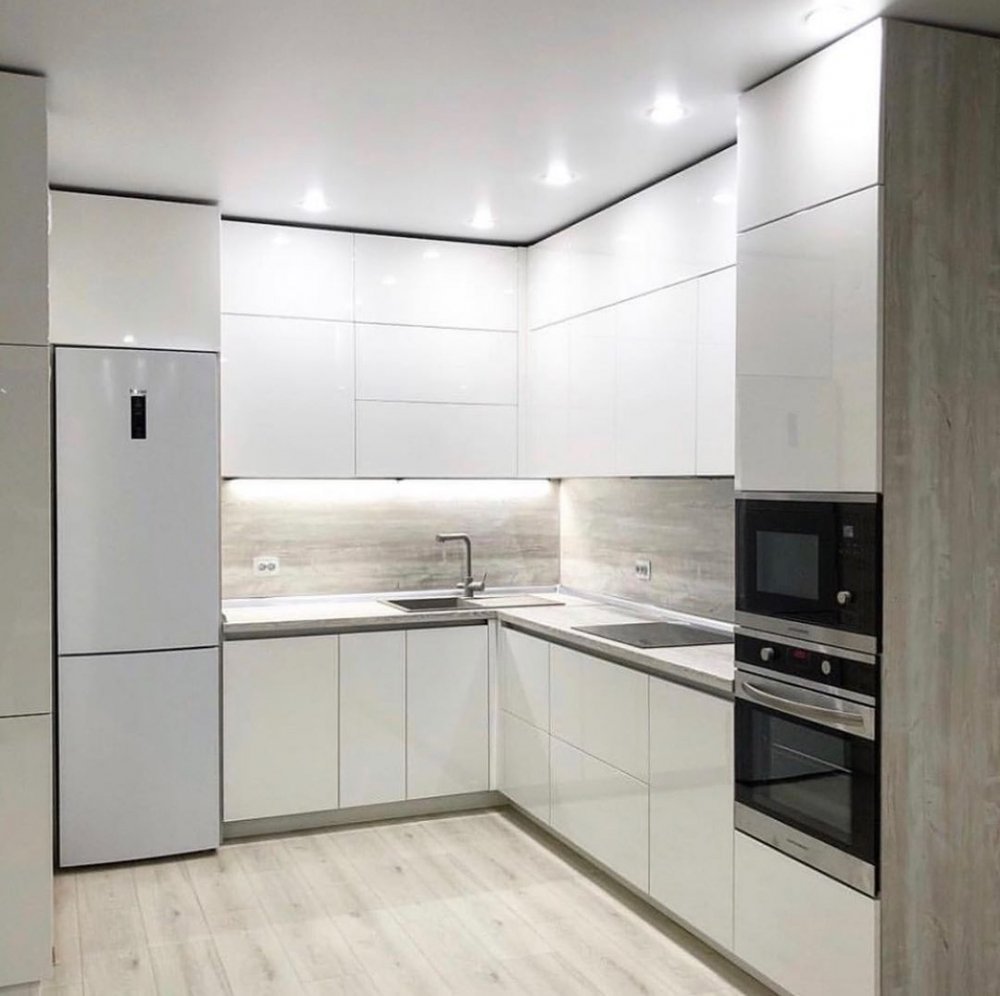 Кухни белые глянцевые угловые
