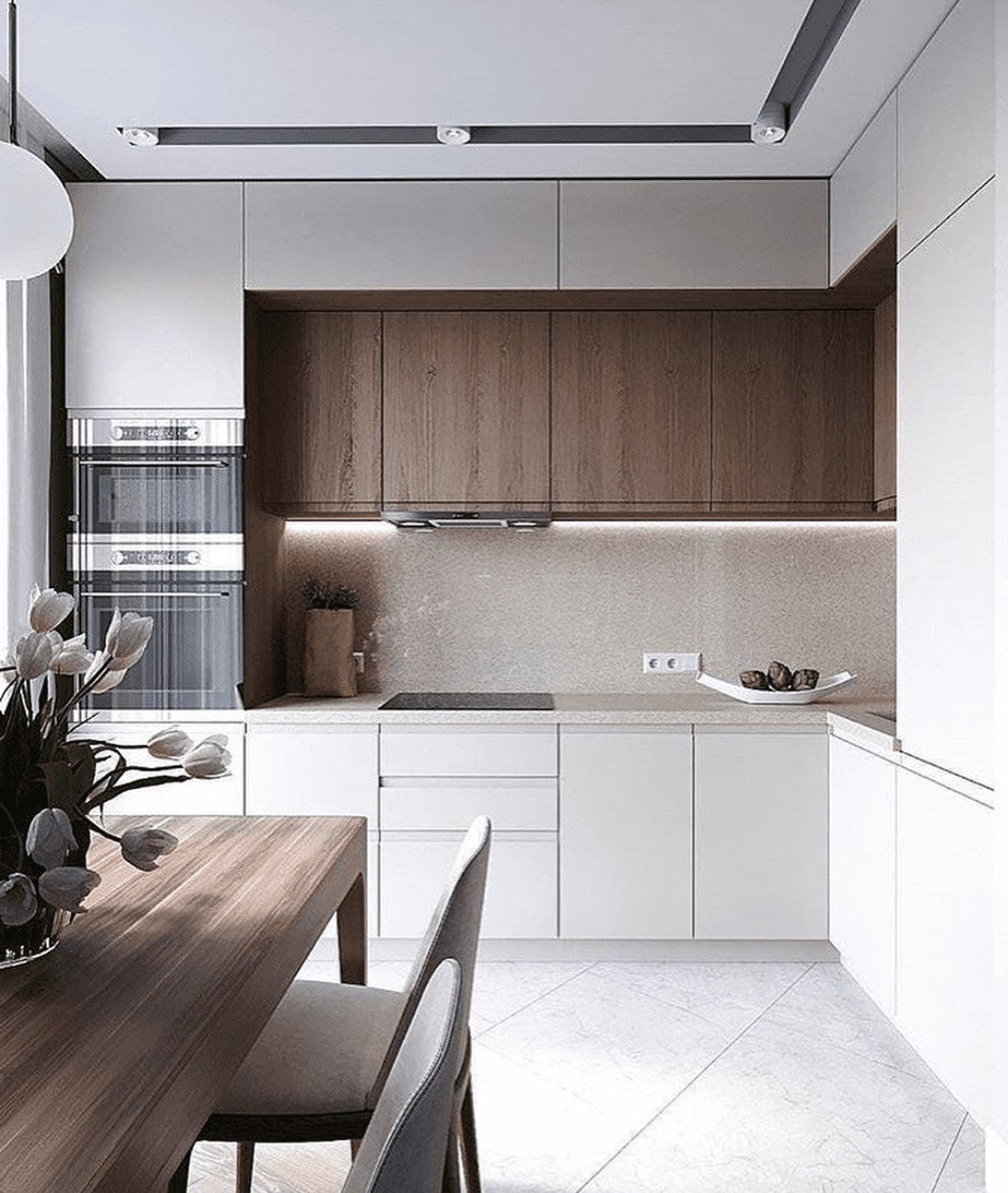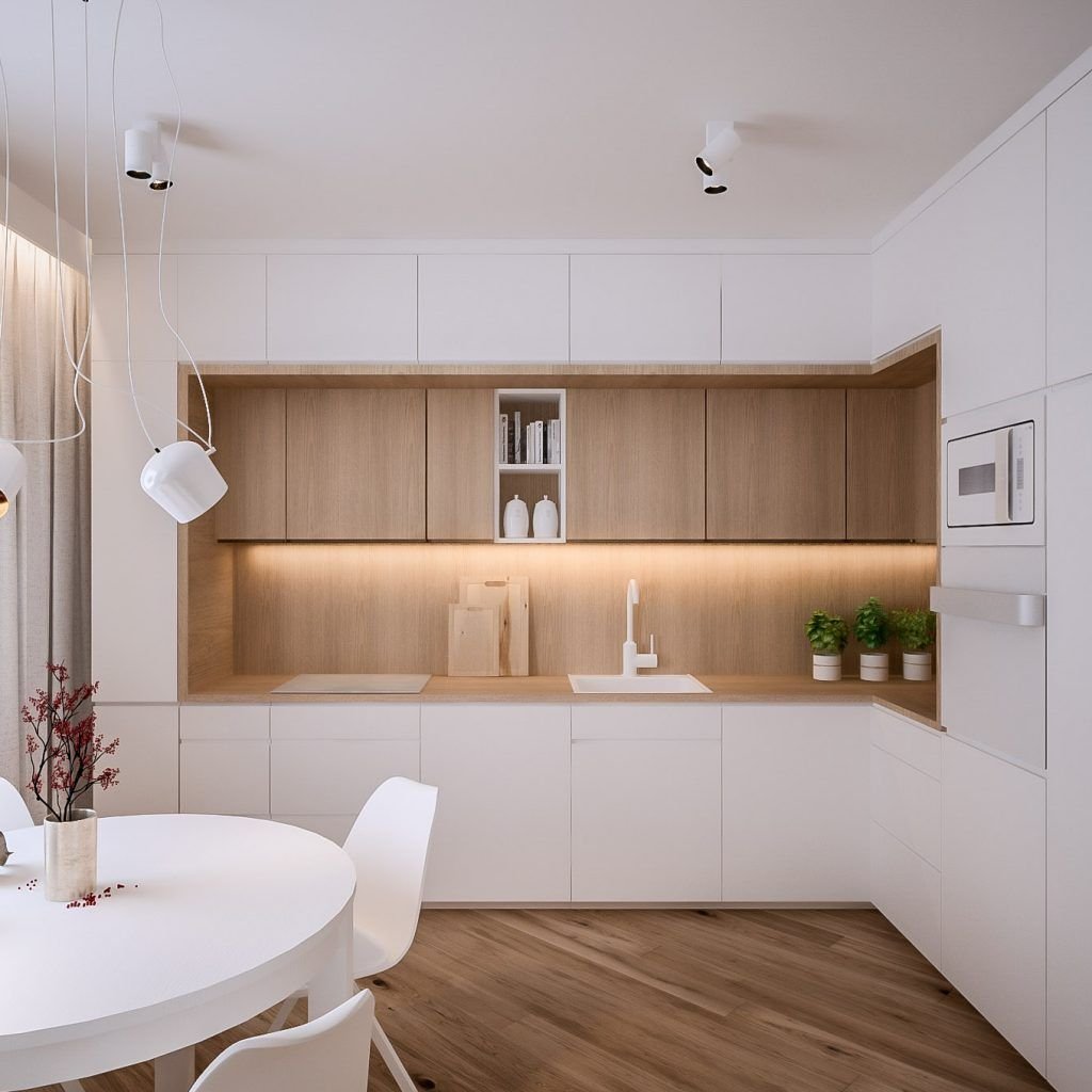 Кухня белая с деревом
