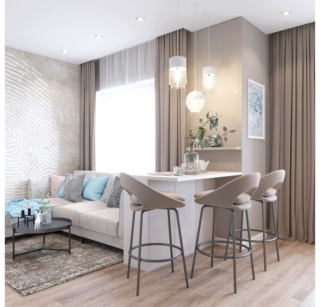 Кухня гостиная в пастельных тонах