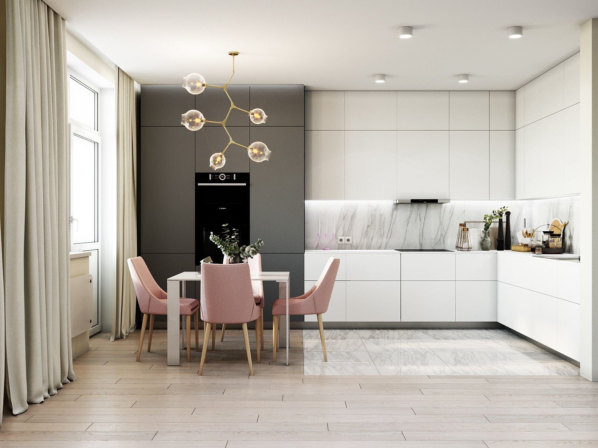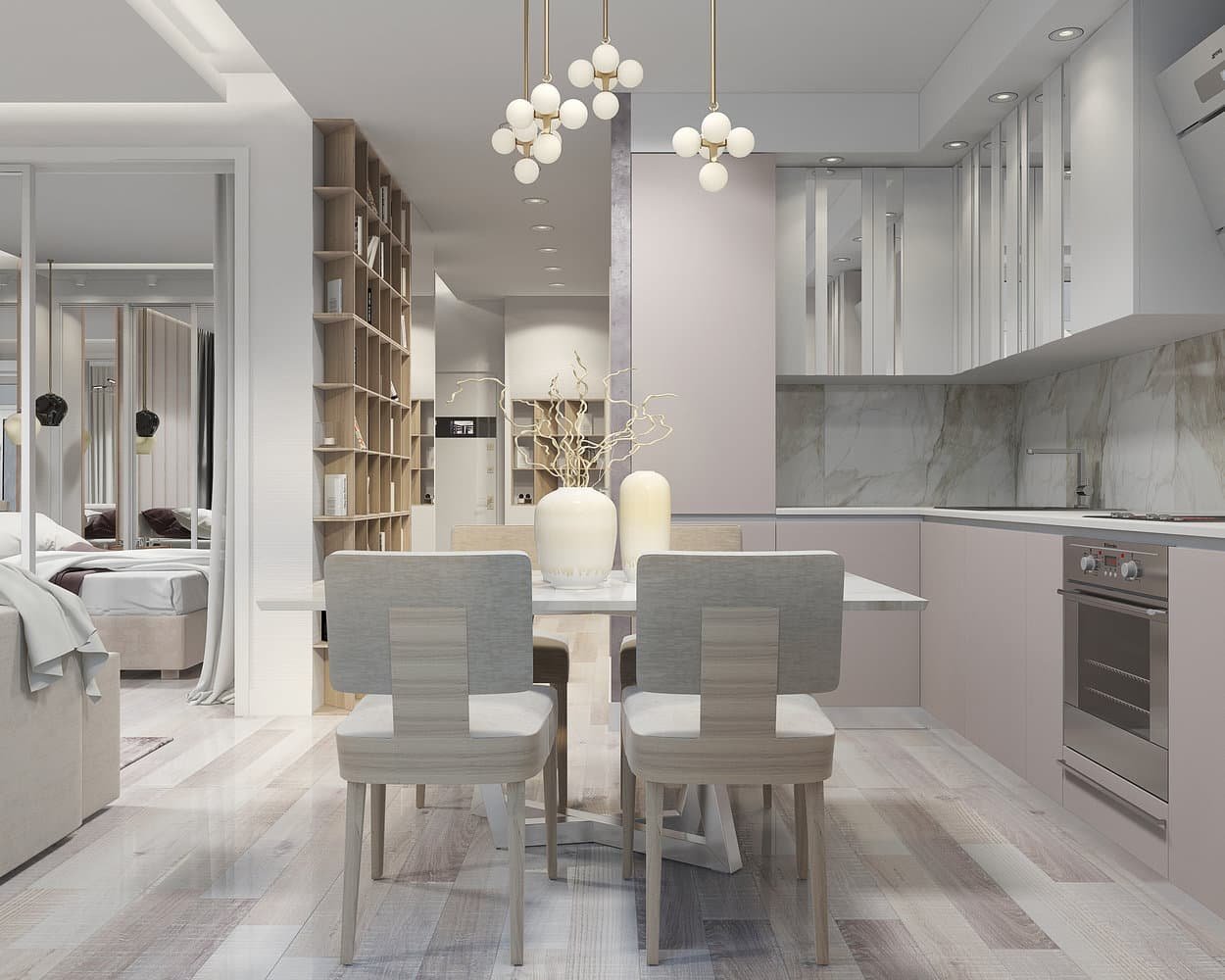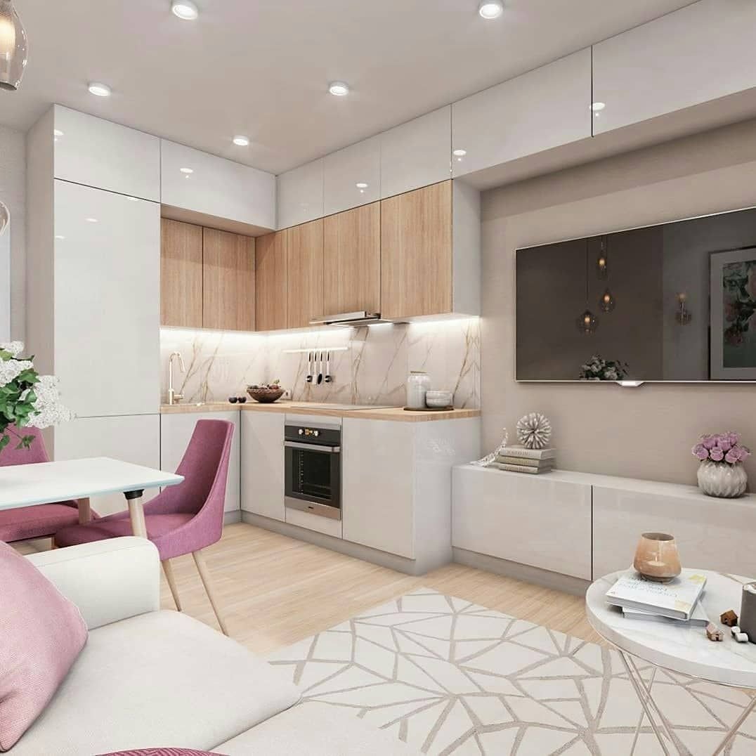 Кухня гостиная розовый интерьер