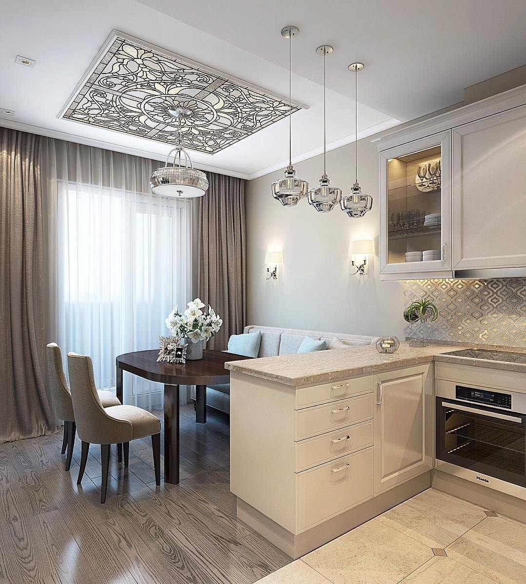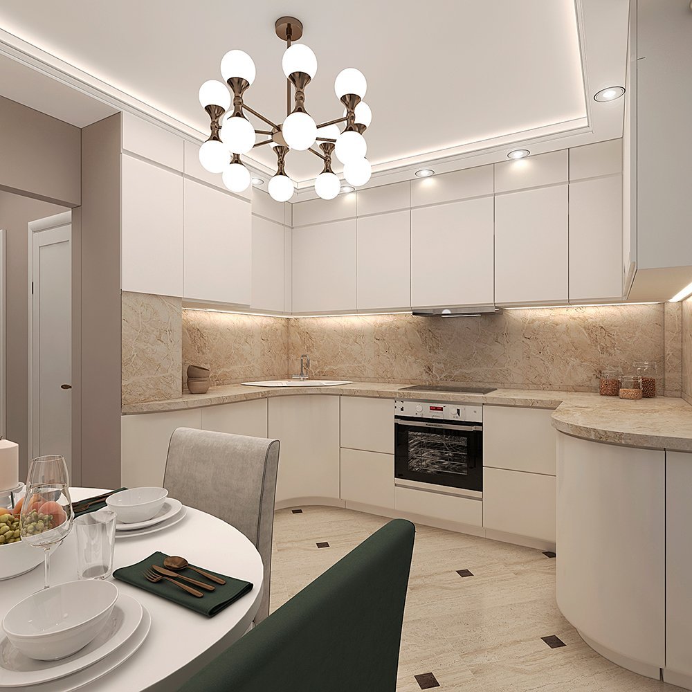 Кухня столовая в бежевых тонах