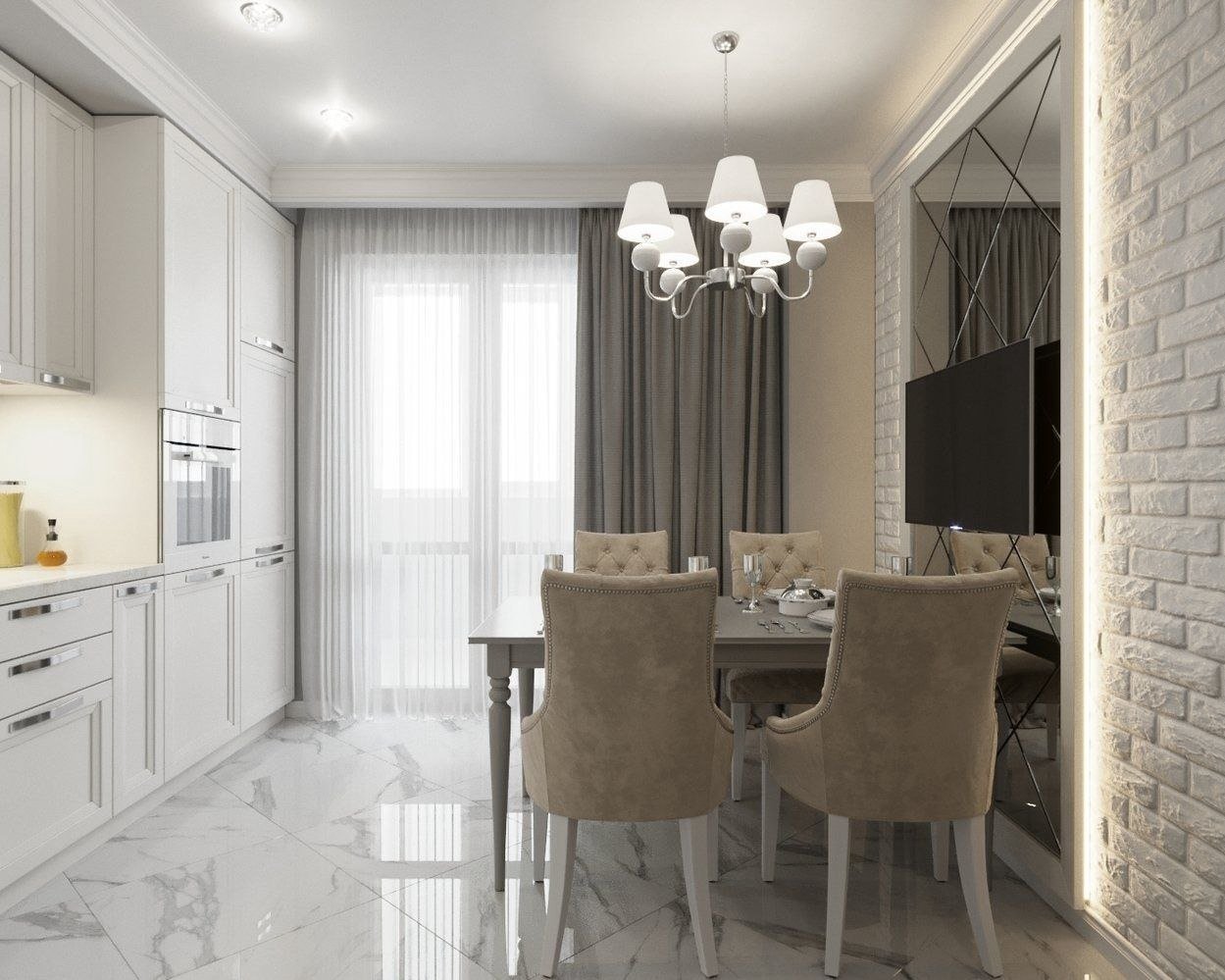 Кухня гостиная белая Неоклассика