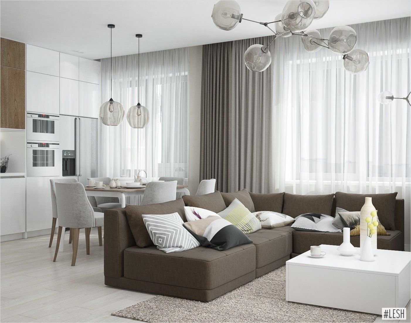 Кухня-гостиная шторы на 2 окна