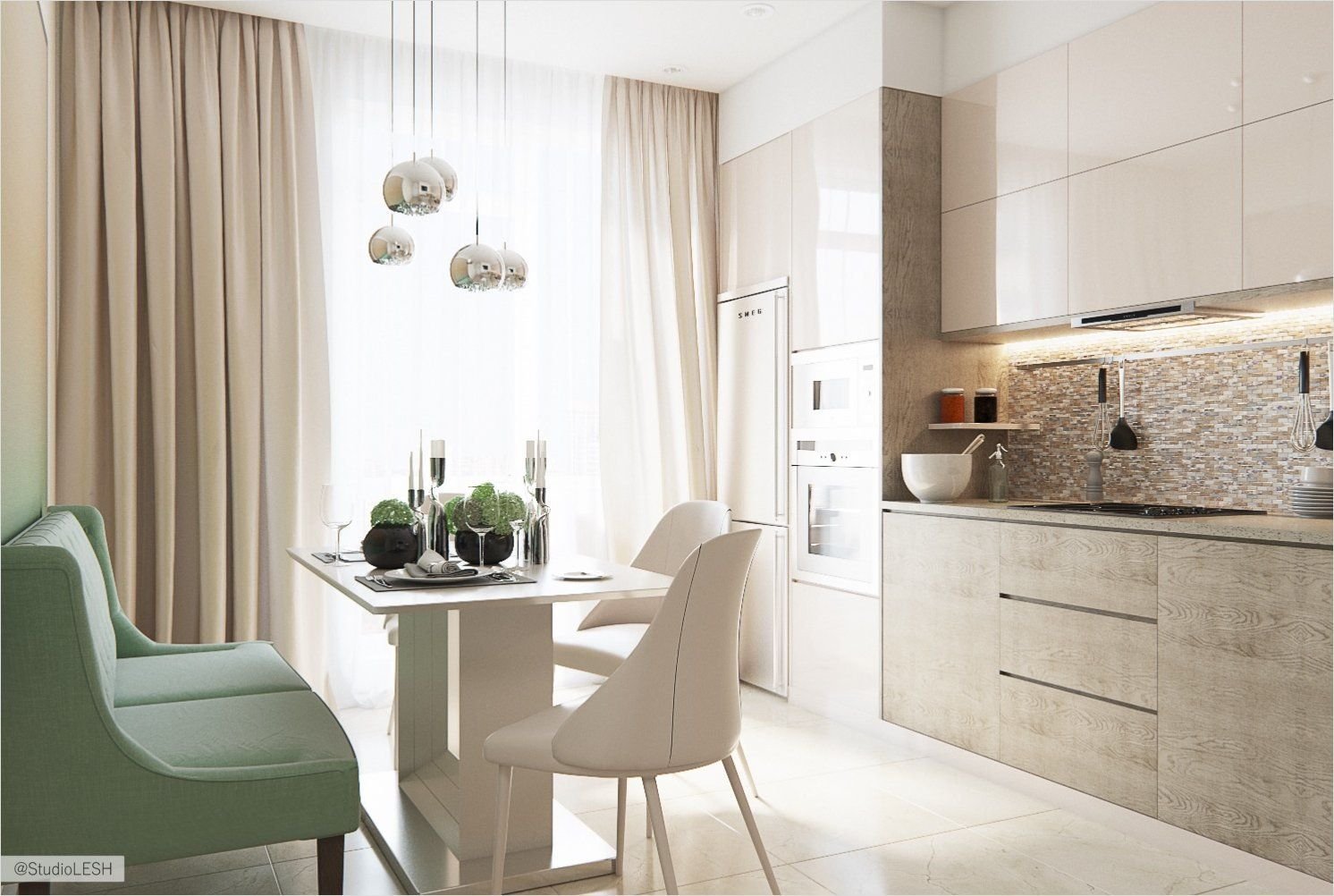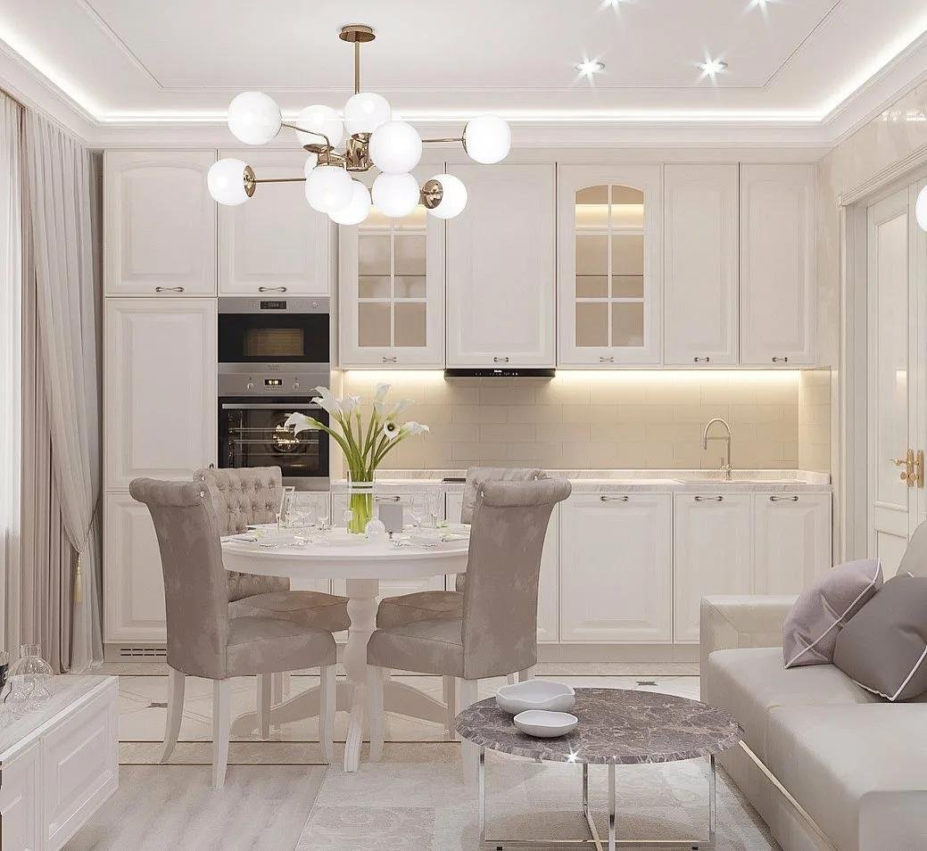 Кухня гостиная в светлых тонах