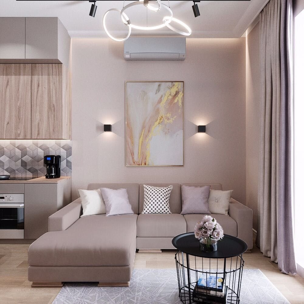 Кухня гостиная в бежевых тонах