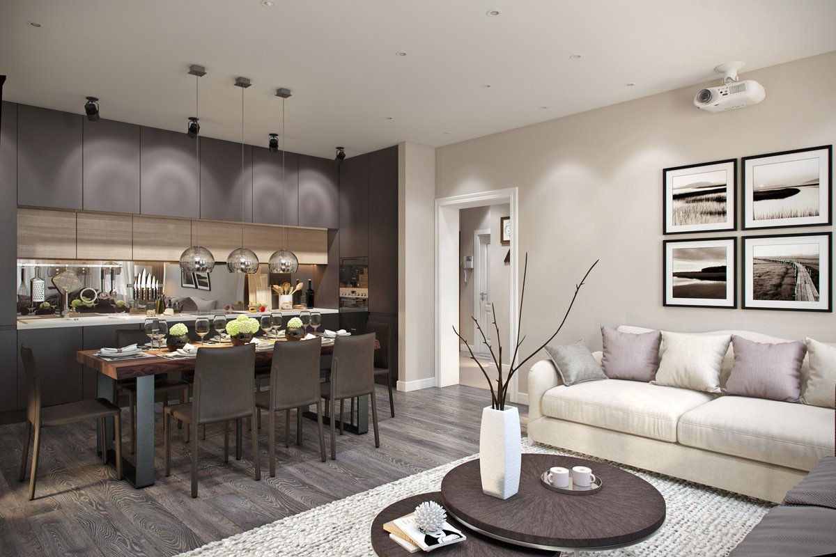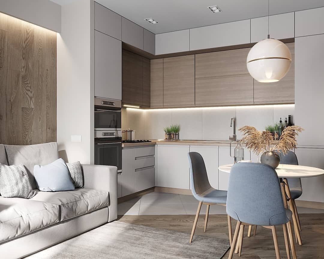 Кухня гостиная светлая современная