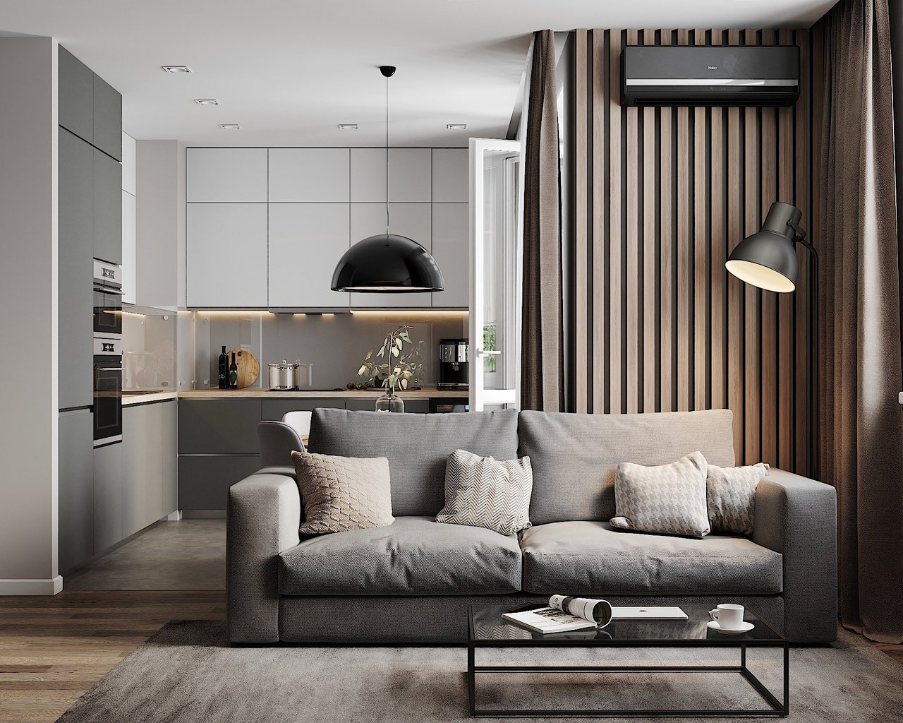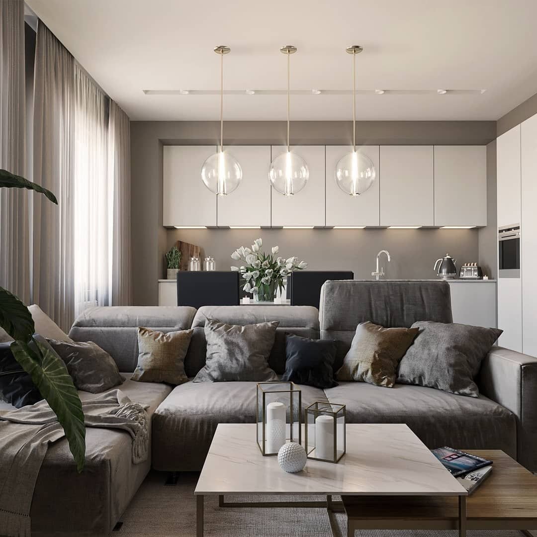 Кухня гостиная в серых тонах