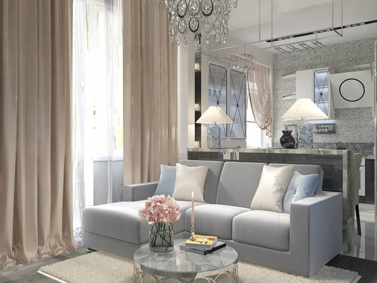 Гостиная арт деко в светлых тонах