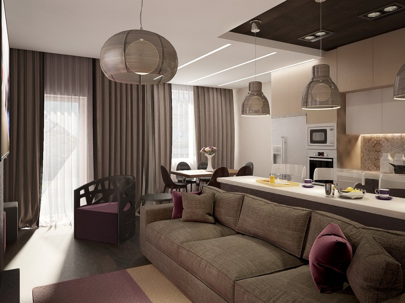 Кухня гостиная в коричневых тонах