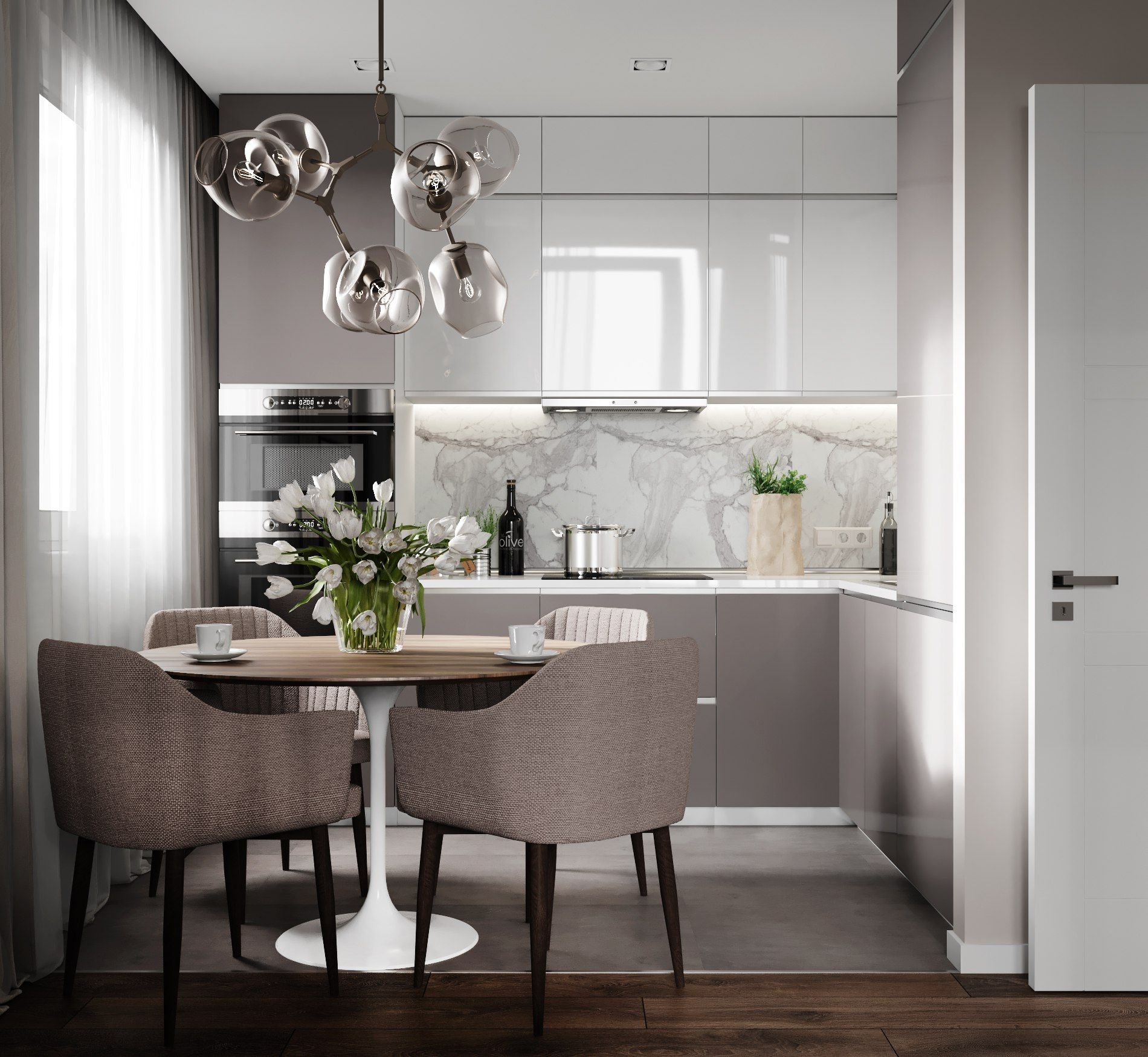 Кухня в серо пудровых тонах