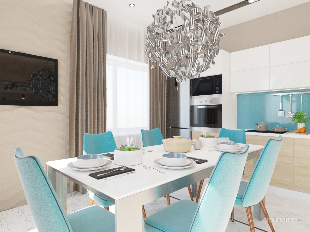 Кухня с бирюзовыми акцентами