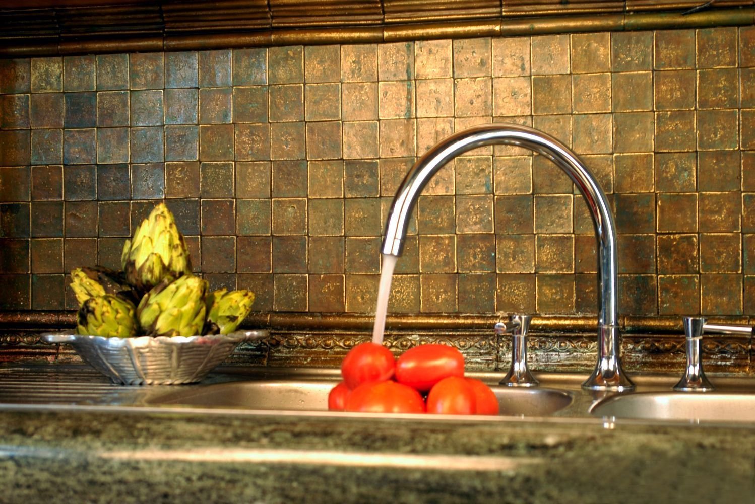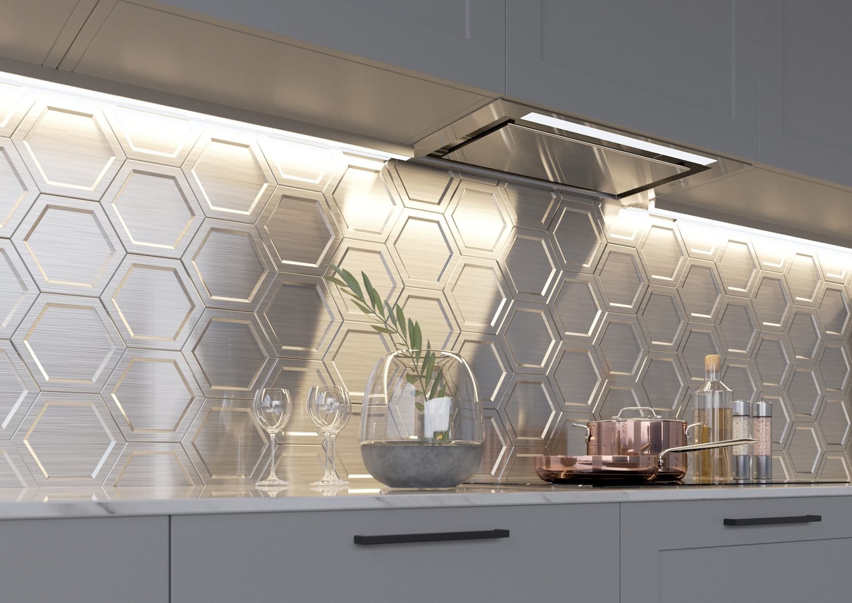 Металлическая плитка для кухни на фартук