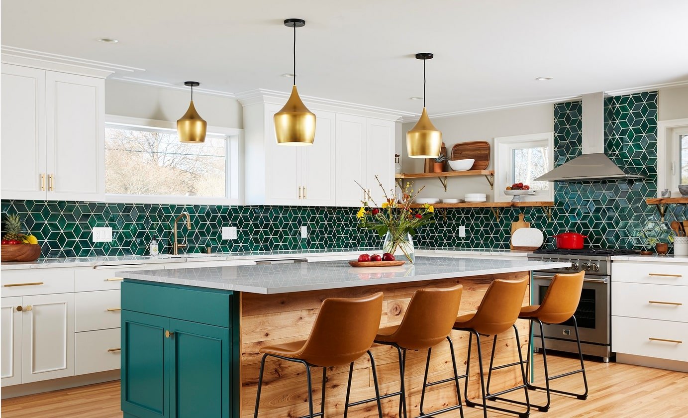 Плитка изумрудного цвета для кухни