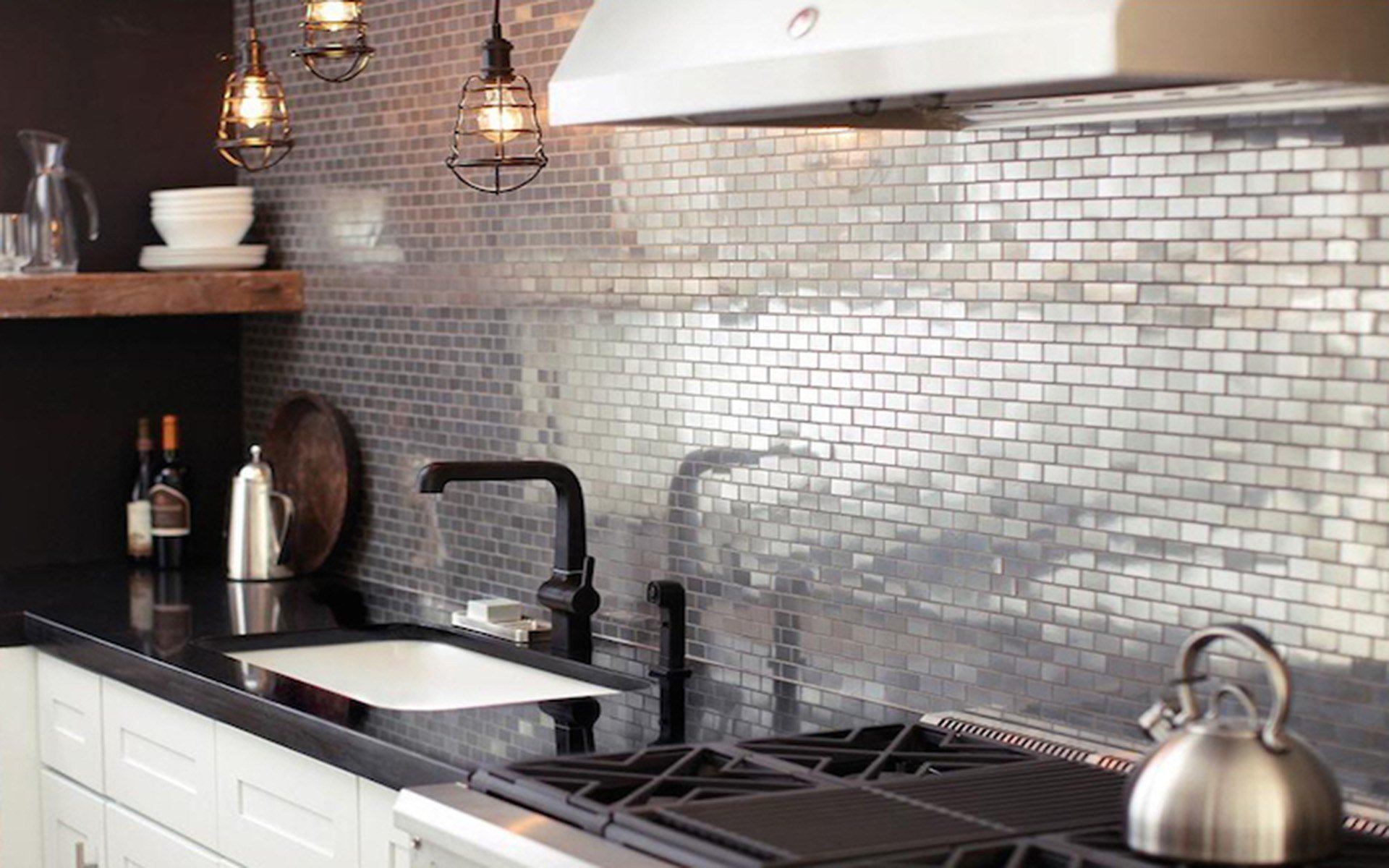 Металлическая плитка на фартуке