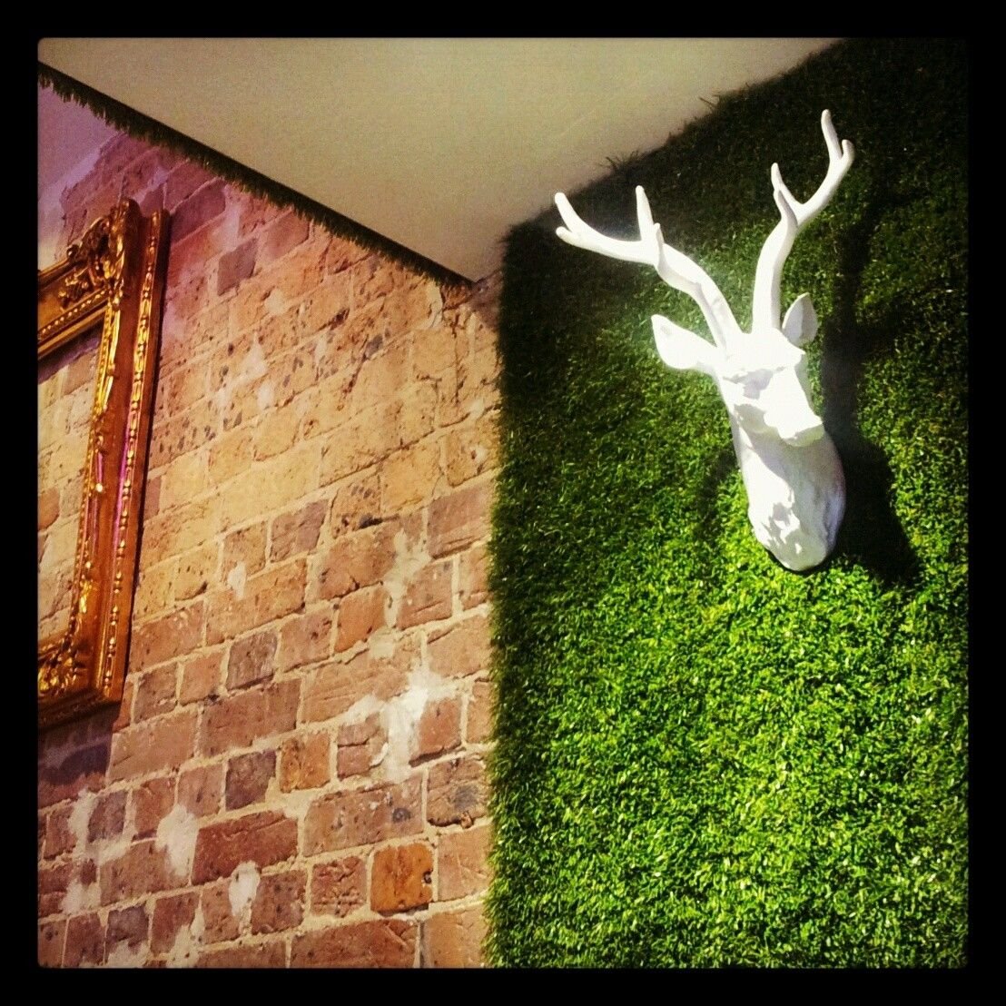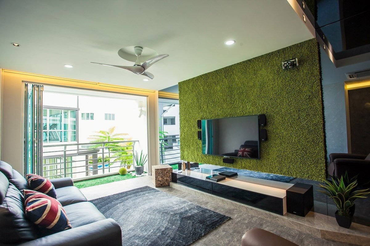Искусственный газон на стене в интерьере