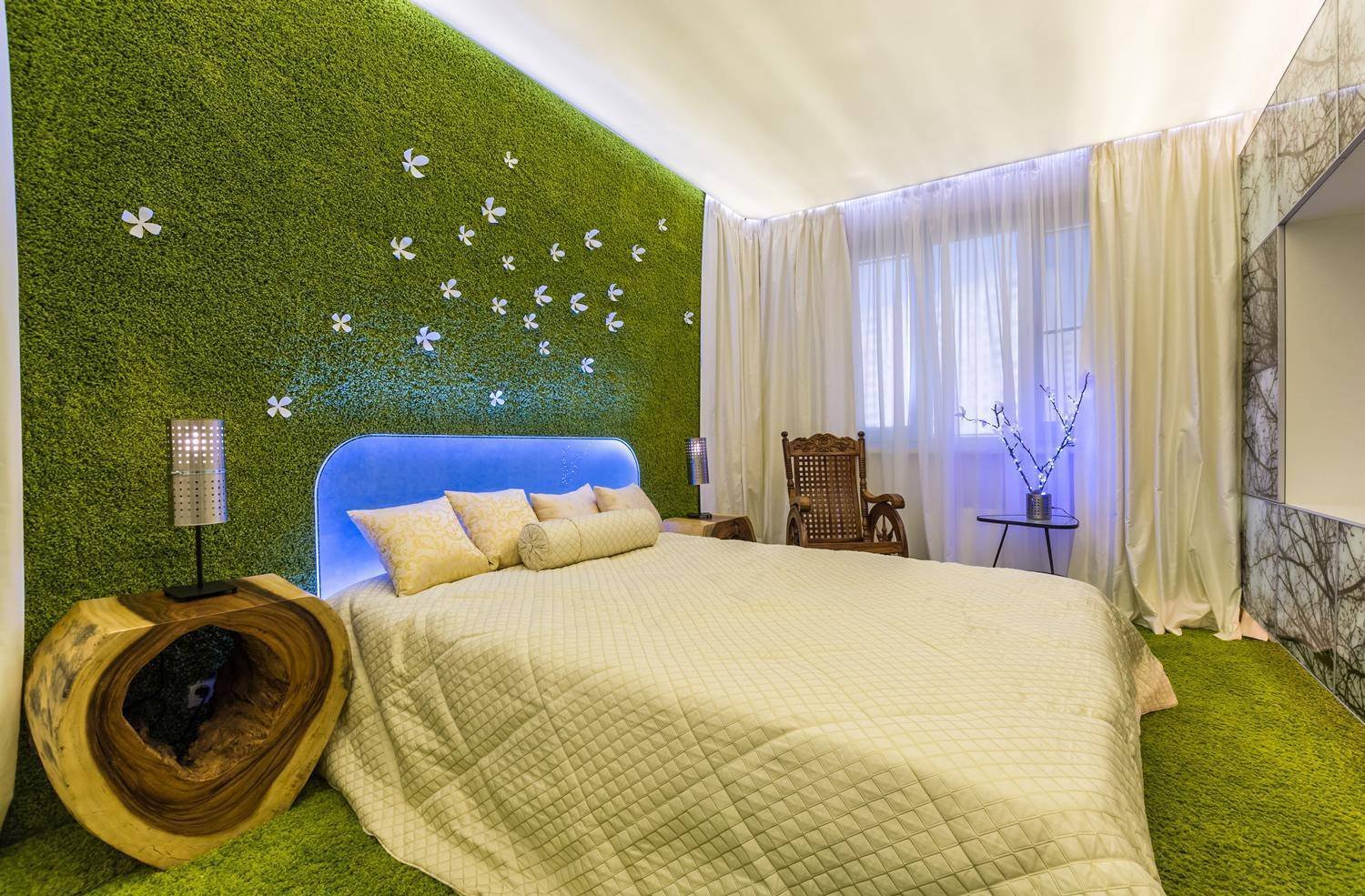 Зеленая спальня в стиле экостиль