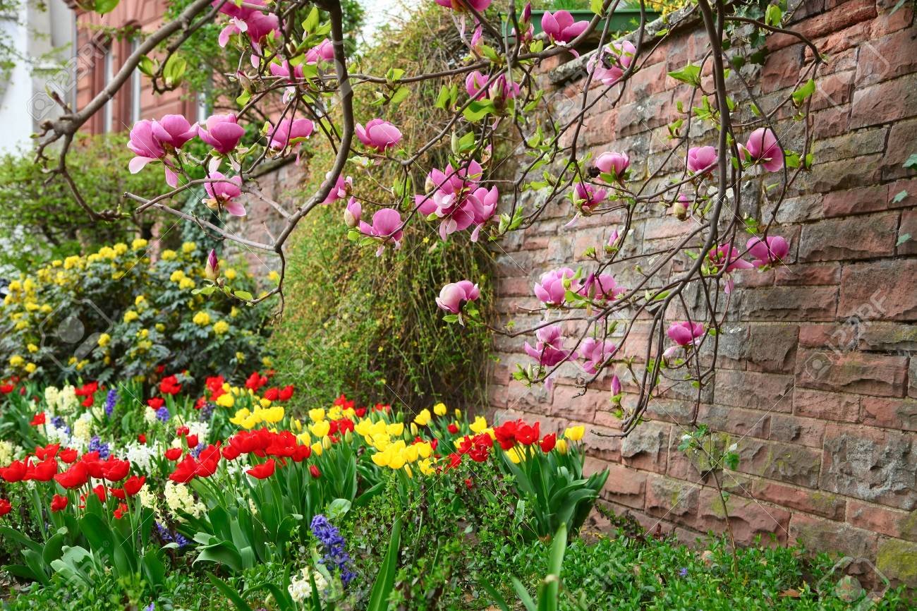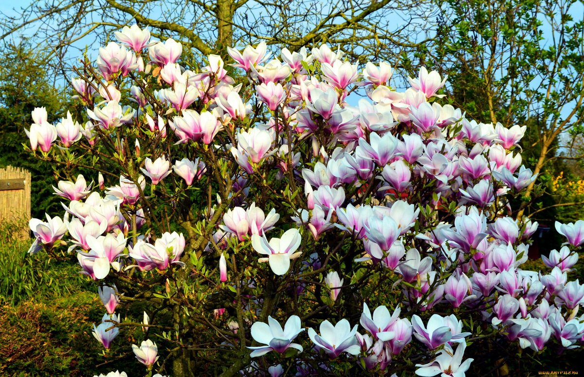 Цветущий сад магнолии