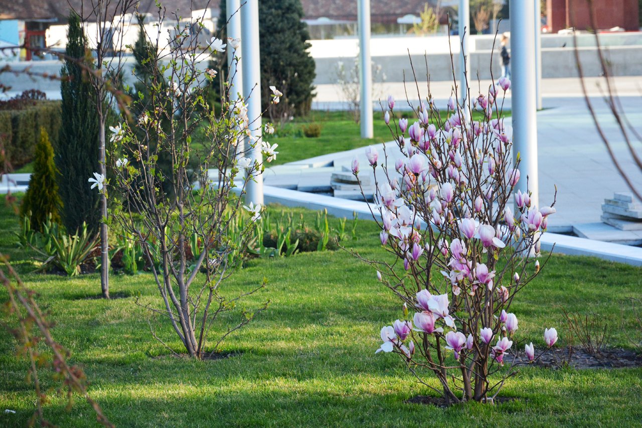 Клумба с магнолией