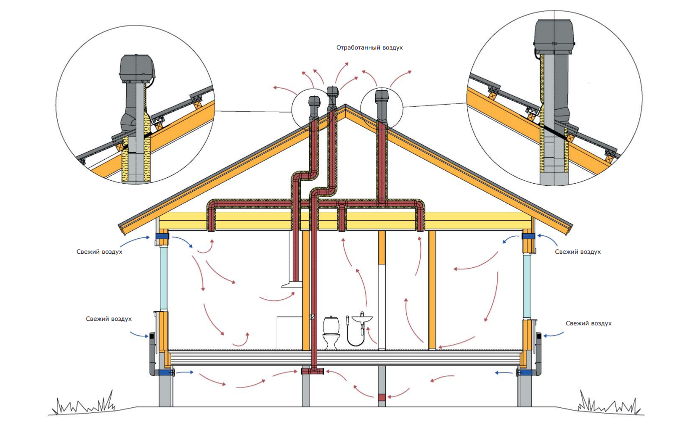 Вентиляция в частном доме из газобетона схема