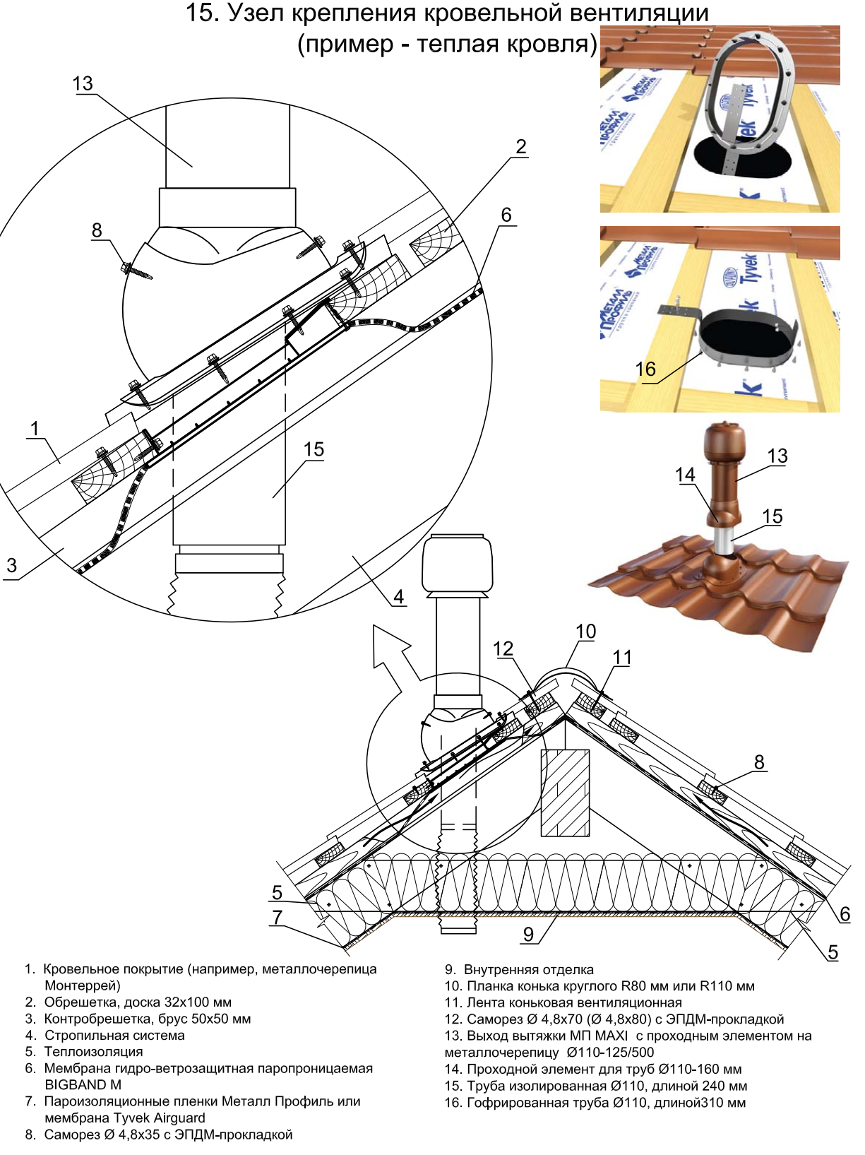 Вентиляция через мягкую кровлю Vilpe 150