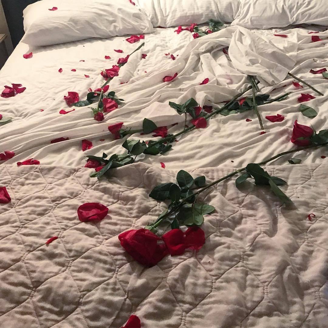 Постель в лепестках роз и свечи
