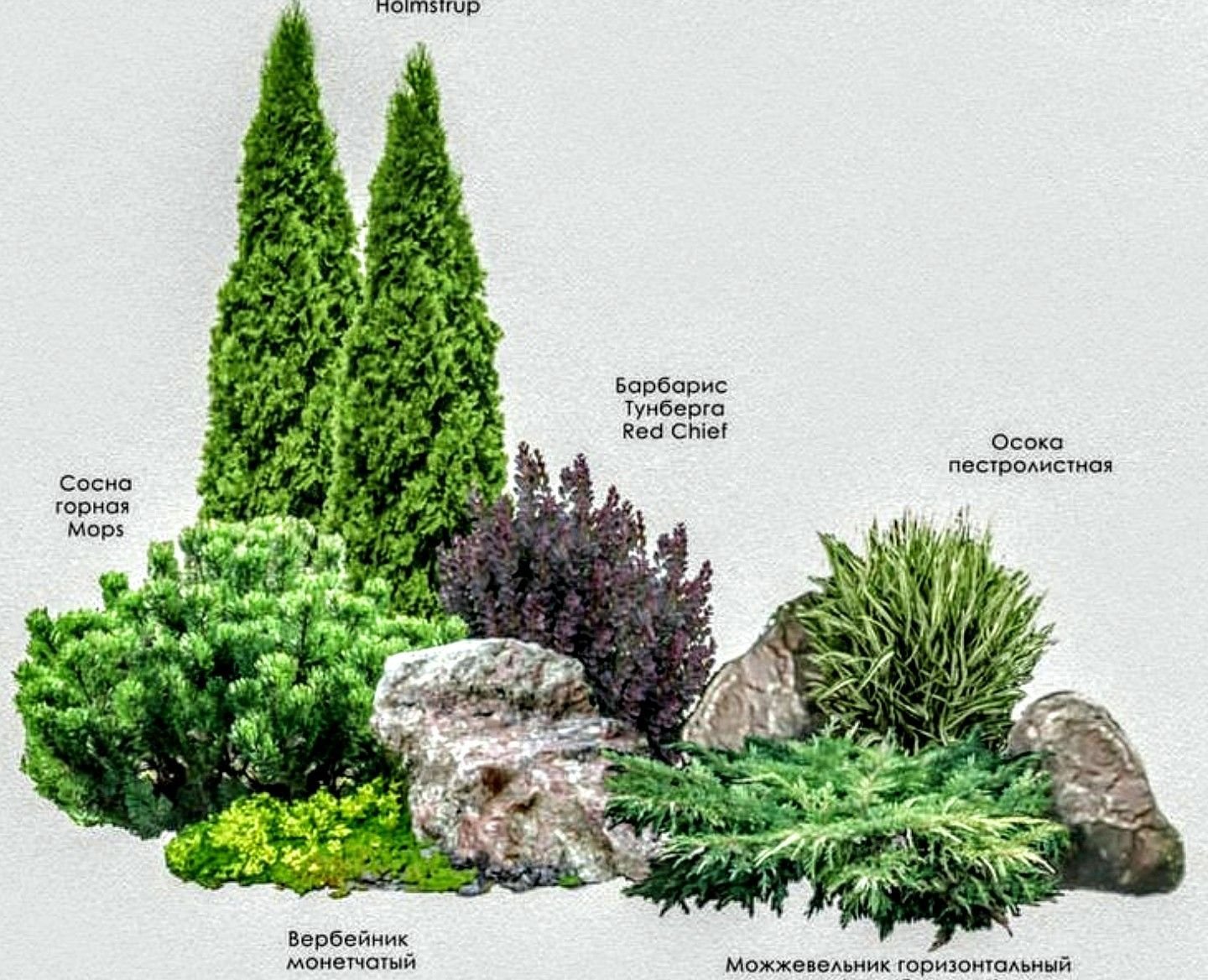 Туя Смарагд,можжевельник казацкий,Горная сосна-клумба