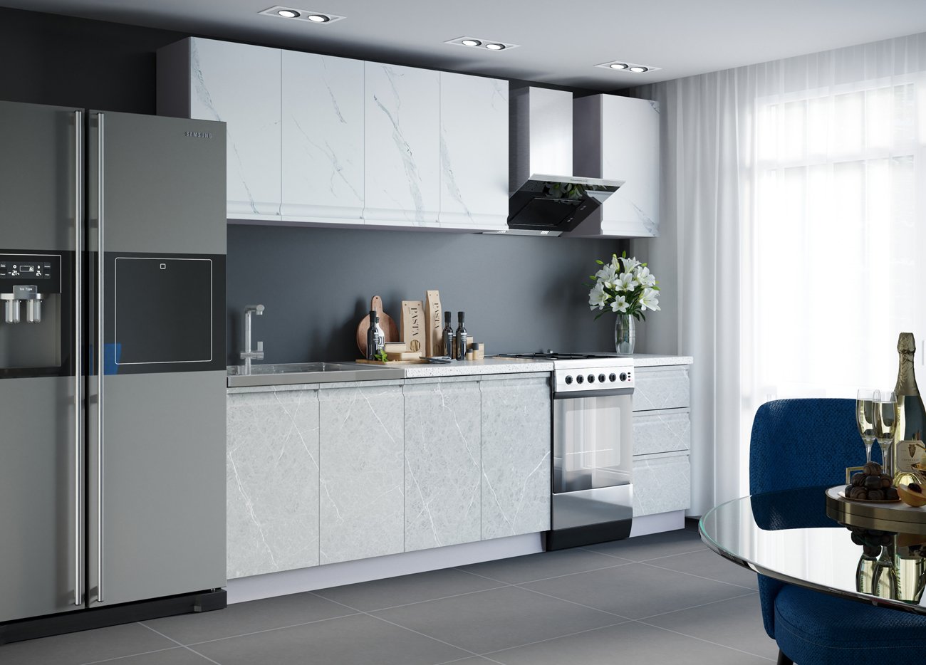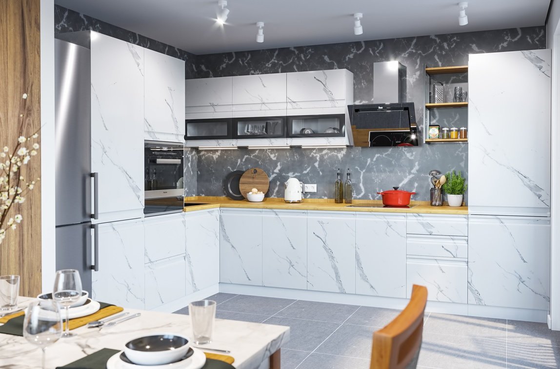 Кухонный гарнитур Монца мрамор Арктик