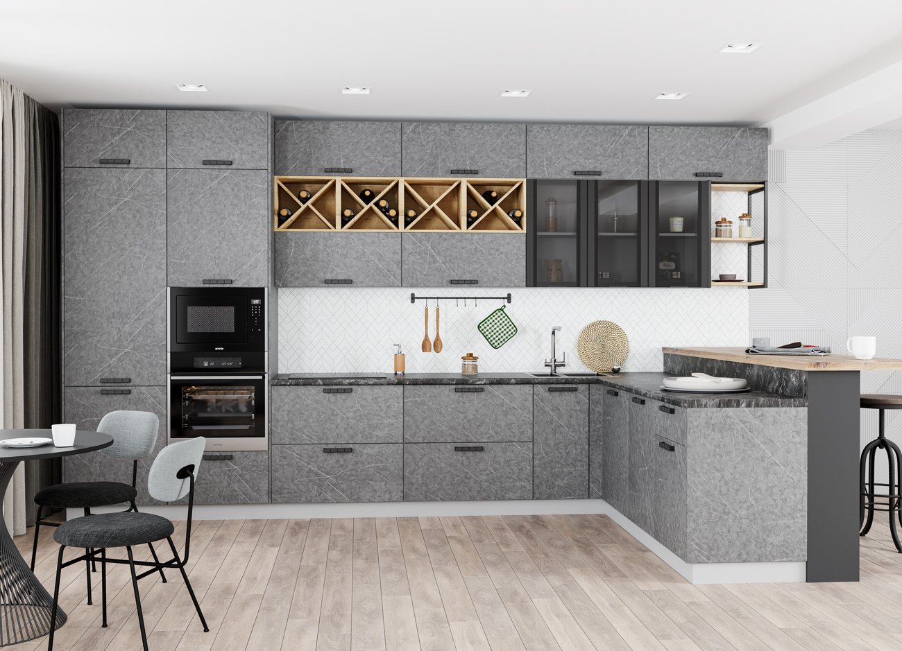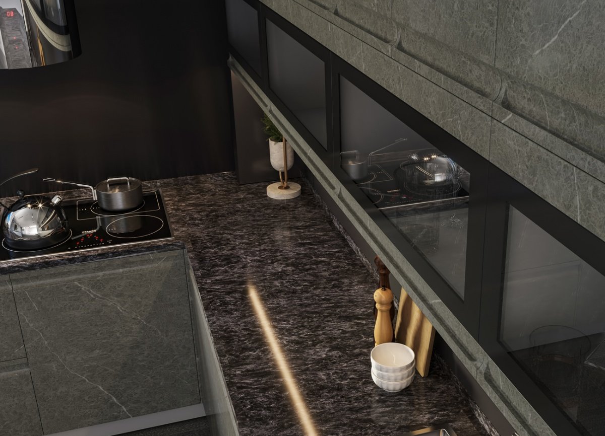 Zetta каменный шпон кухня