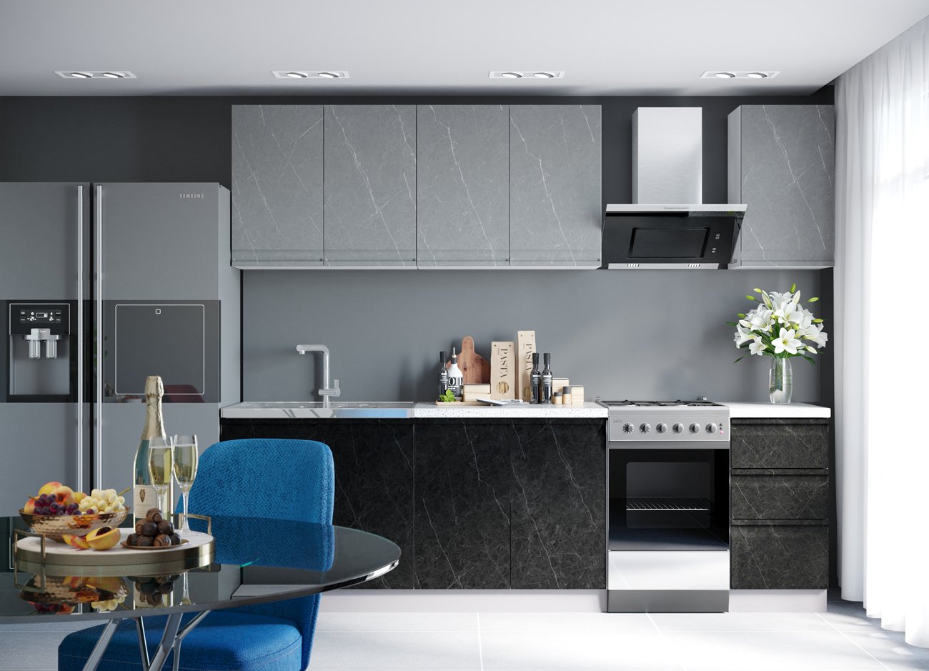 Кухонный гарнитур скала мрамор Арктик