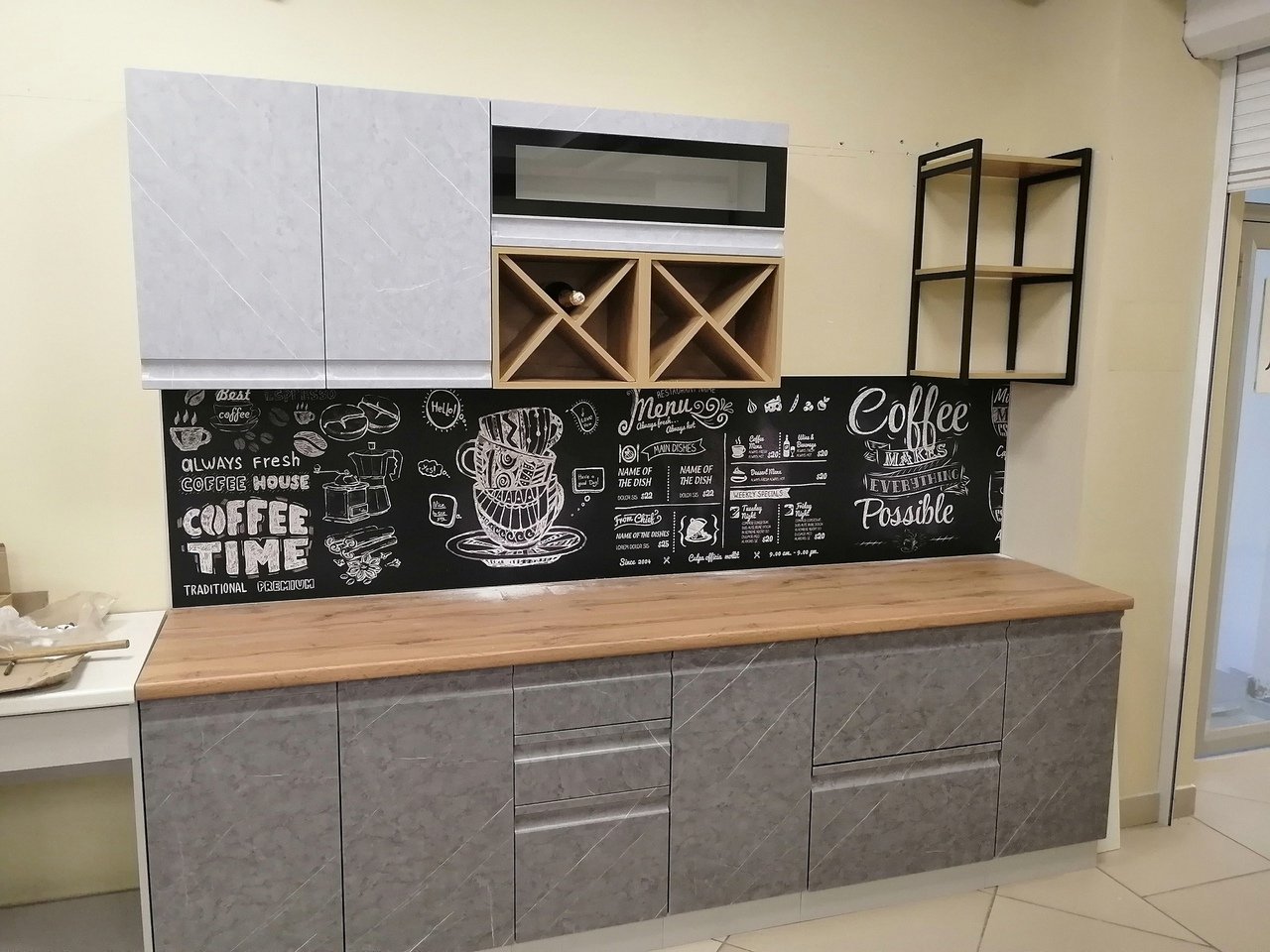 Столешница и фартук под мрамор для кухни