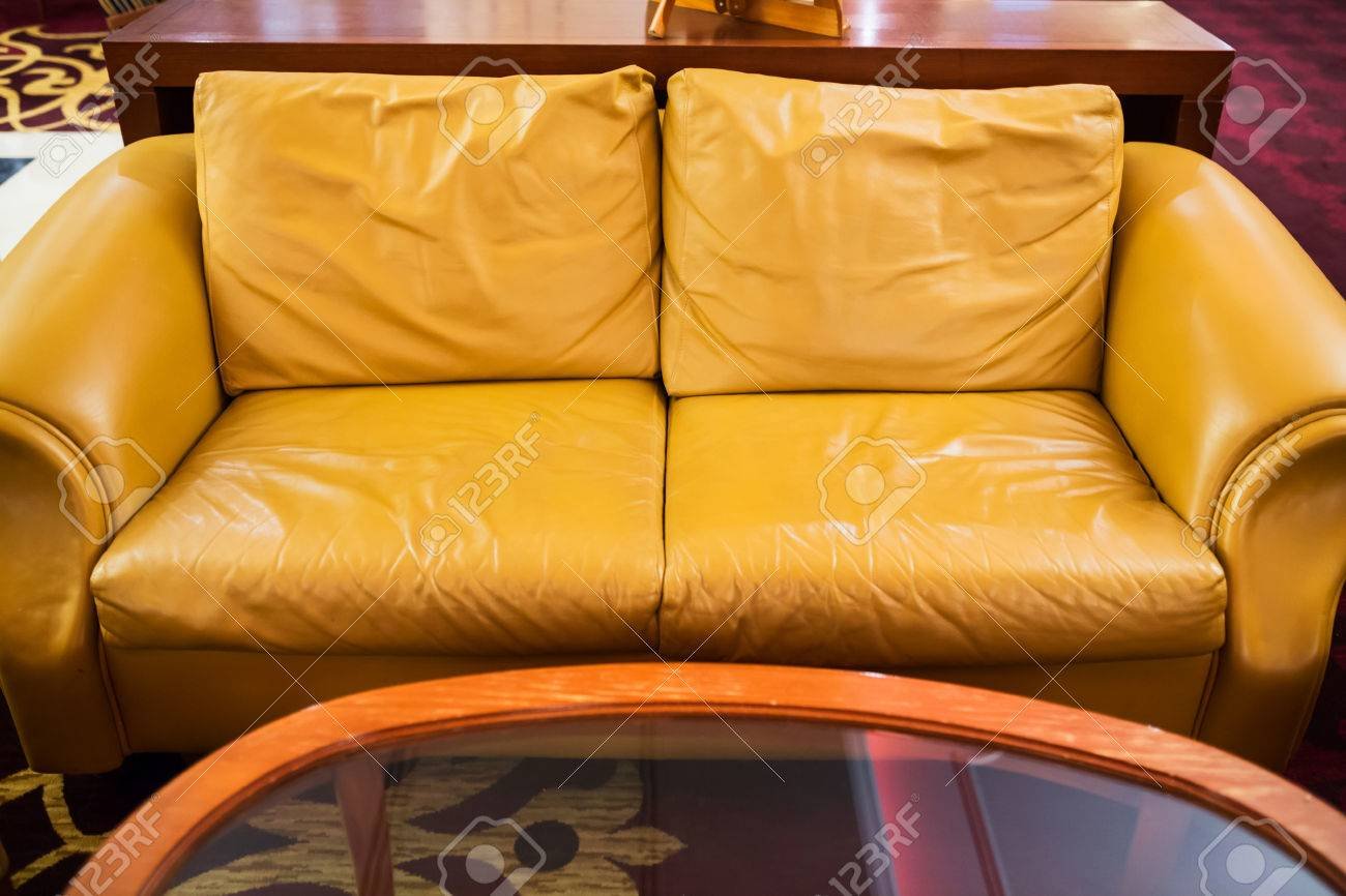 Желтый кожаный диван