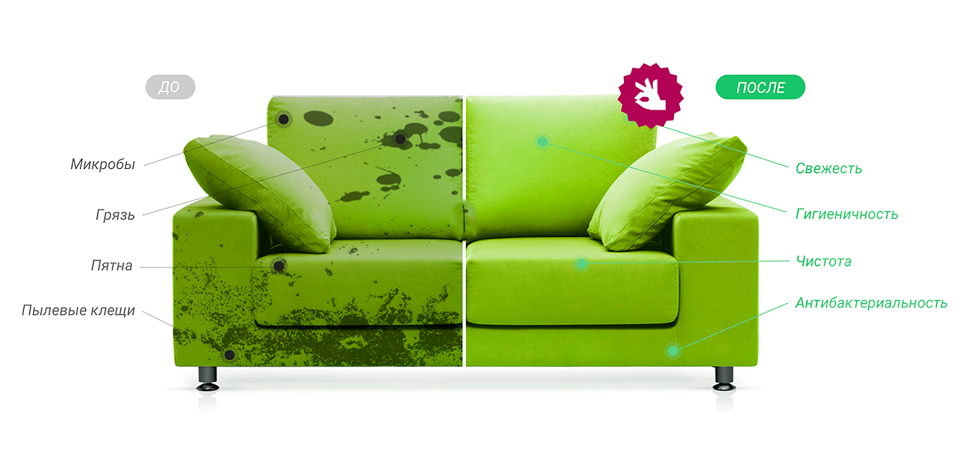 Химчистка мягкой мебели до и после