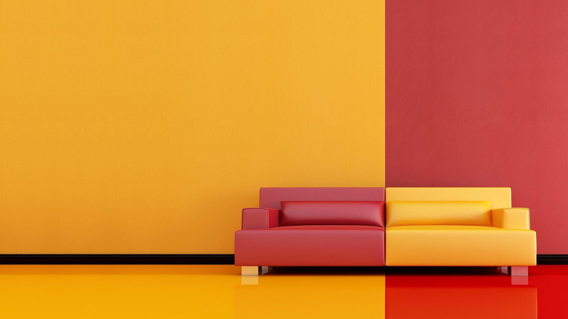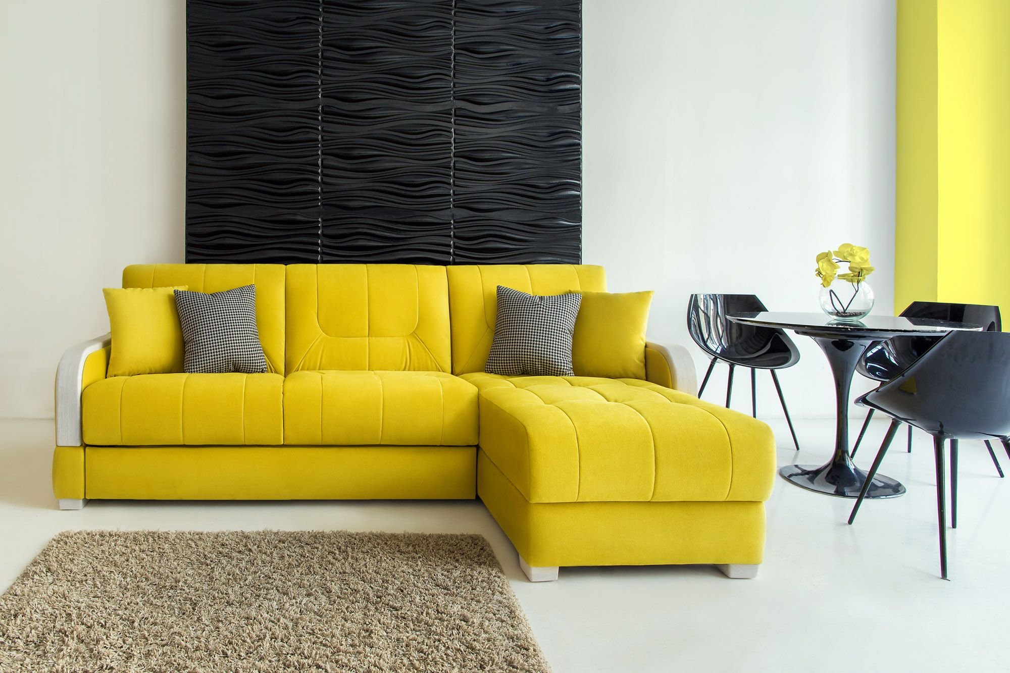 Желтый диван на желтом фоне